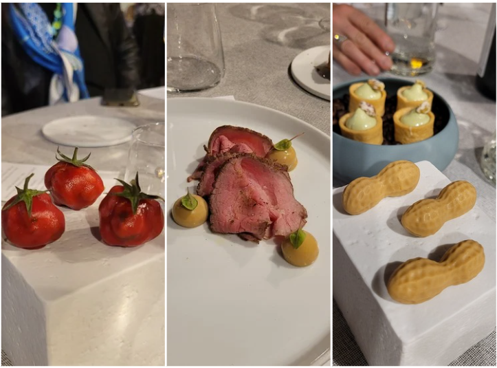 A Borgomanero nel 2019 apre /gu.stà.re/ oltrecucina, ristorante di alta cucina, già segnalato su tutte le guide, che propone piatti dai gusti raffinati e con abbinamenti inconsueti, ma molto validi. Tutto viene elaborato e cucinato da Valentina Maioni, giovane cuoca con importanti esperienze nei migliori ristoranti novaresi, al suo fianco Manuel Ettoumi che cura la sala in modo professionale forte di esperienze in ristoranti stellati. Ottimi i piatti proposti a cominciare dal finto pomodorino, al girello al rosa con una inconsueta ma prelibata maionese alla nocciola, filetto di trota di lago, marinata con gin Fulmine prodotto a Pettenasco. Risotto riserva san Massimo, perfetta cottura, animelle al marsala, croccantezza di gruè al cacao; pancia di maialino a lunga cottura, senza grassi, cotenna croccante, semifreddo allo yuzu con gelato ai piselli. Buono l'abbinamento dei vini con finale di Moscato La Spinetta, fresco e di un dolce non stucchevole. Invitato d'onore il Consultore Accademico e Delegato di Aosta Andrea Nicola con sig.ra Alessandra. Simposiarca Paolo Spaini. Serata molto apprezzata.