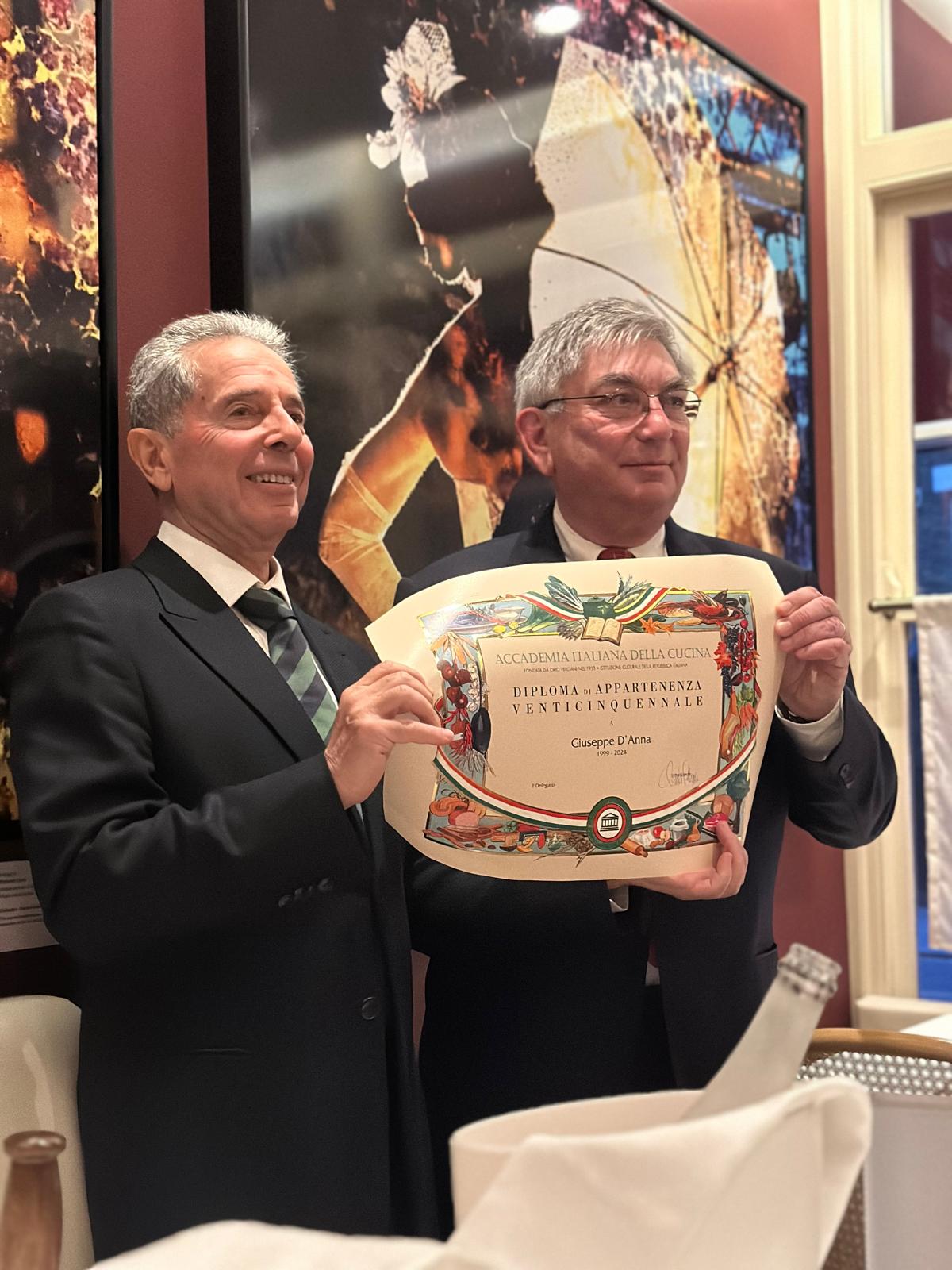 Riunione conviviale congiunta della due Delegazioni allo Sheraton Walima di Tunisi in occasione della quale è avvenuta la consegna del materiale associativo e dell’attestato di appartenenza all’Accademico Onorario, Ambasciatore d'Italia in Tunisia S.E. Alessandro Prunas, e agli Accademici di Hammamet Luciano Barillaro e Giulio De Gregorio. Al termine della cerimonia i Delegati Luigi Collu e Gian Paolo Sessa hanno rivolto ai neofiti parole di congratulazione e d'augurio. La cena è stata di buon livello sia nella presentazione dei piatti sia nella preparazione della tavola, salvo alcune osservazioni sul servizio del vino. Alla fine della piacevole serata gli Accademici si sono congratulati con lo chef.