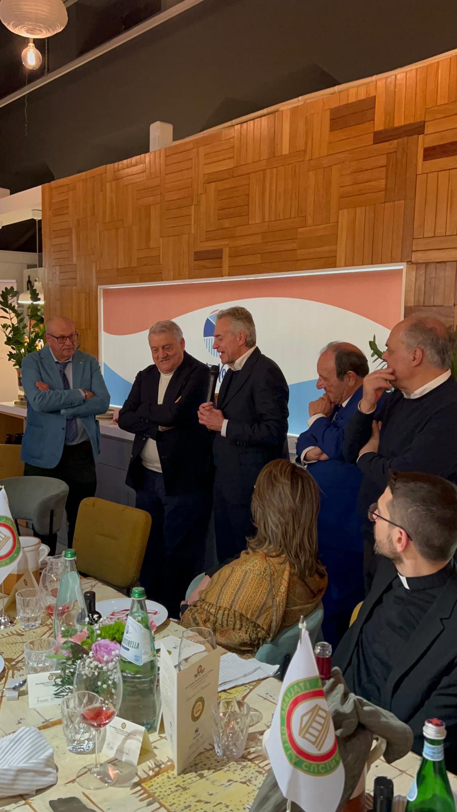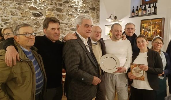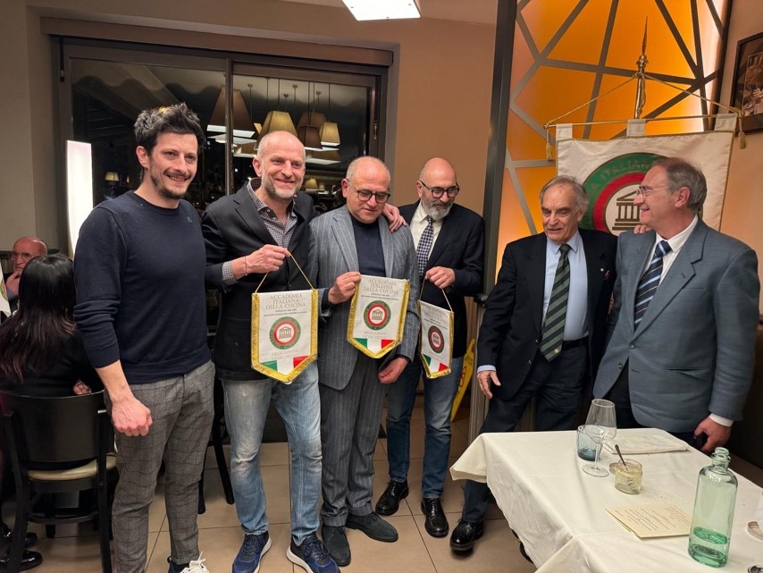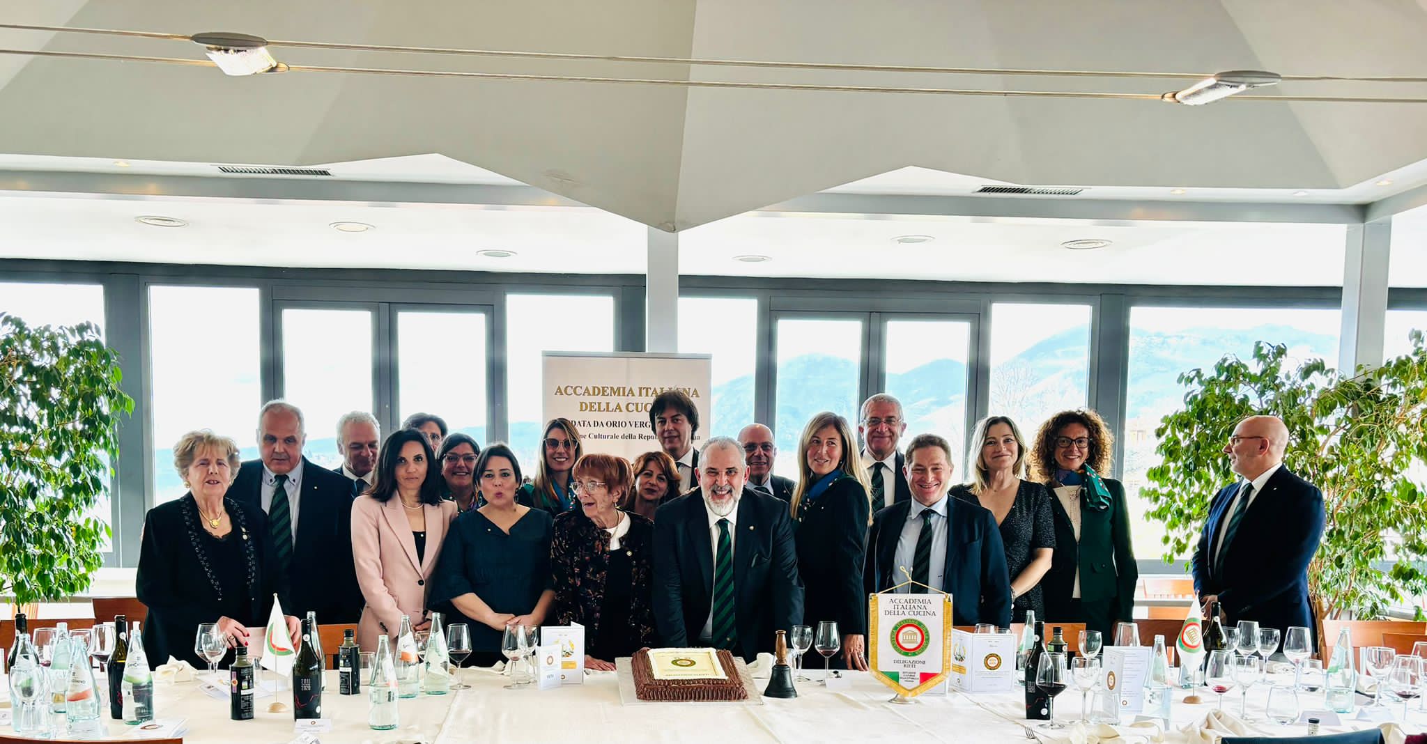 Pranzo dedicato alla cultura culinaria locale con celebrazione di sapori autentici e tradizione nella pizzeria Ai Galli ad Agerola (NA). Simposiarca il Consultore Alberto Pontecorvo. Da apprezzare innanzitutto la gentilezza e la disponibilità della famiglia Iovieno che gestisce con passione il locale. Ottima la degustazione delle pizze (praianese, ai galli, con cornicione ripieno di ricotta ed infine con pancetta e provolone del monaco) dopo un ricco antipasto con sfizi fritti e un tagliere di salumi a metro zero, serviti su focacce calde. Servito anche un ottimo vino rosso, di produzione propria, così come pomodori e verdure. Per finire zeppoline fritte calde con crema di nocciole, focacce con cioccolata e pere pennate caramellate, inoltre una squisita pastiera napoletana cotta nel forno a legna che ha chiuso in bellezza questo pranzo conviviale che gli Accademici e gli ospiti presenti hanno dimostrato di gradire particolarmente. Consegnati alla famiglia Iovieno quindi il piatto dell'Accademia in silver, un volume della Biblioteca di Cultura Gastronomica e la vetrofania dell'anno 2024.