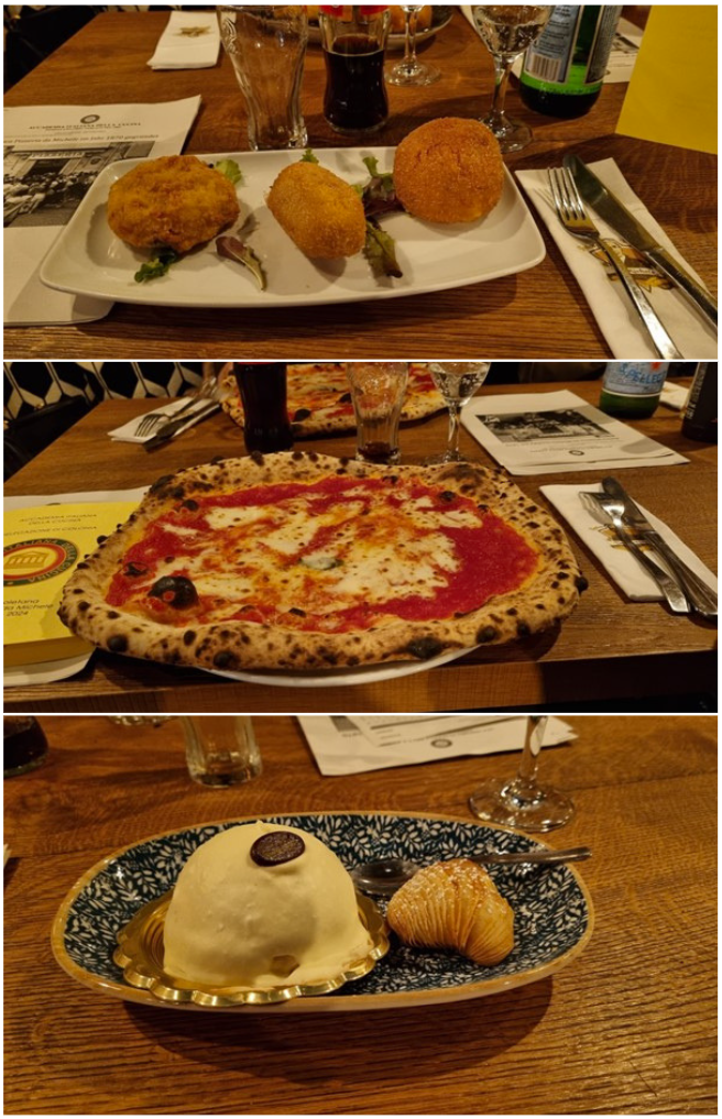 Evento dedicato alla cultura culinaria partenopea con celebrazione di sapori autentici e tradizioni millenarie nella sede di Colonia della celebre Antica Pizzeria da Michele. Simposiarca l’Accademico Natale di Rubbo. La serata è iniziata con una selezione di fritti di terra, autentici capolavori della cucina partenopea. Croccanti e fragranti, i fritti hanno deliziato i palati ma il piatto forte della serata è stata la pizza, preparata secondo la tradizione impeccabile della Pizzeria da Michele. Solo due varianti erano offerte, la Margherita e la Marinara, rispettando la semplicità e l'autenticità che rendono la pizza napoletana un'icona culinaria globale. Per concludere in dolcezza, alcuni dei dolci tipici napoletani più prelibati: la sfogliatella e la delizia al limone. L'esplosione di sapori e profumi ha catturato l'essenza stessa della pasticceria napoletana. Il tutto è stato accompagnato dalla birra artigianale del Birrificio da Michele, che ha aggiunto un tocco di freschezza e vivacità alla serata. Ma non è stata solo una cena: è stata un'occasione per raccontare la storia e le tradizioni che si celano dietro i fritti di terra e la pizza napoletana. Un viaggio nel tempo e nello spazio attraverso i sapori e le tradizioni della vivace e affascinante Napoli, che ha lasciato un'impronta indelebile nei cuori e nei palati di tutti i presenti. Le valutazioni date dagli Accademici sono state soddisfacenti ed è stata pertanto consegnata la vetrofania del 2024.