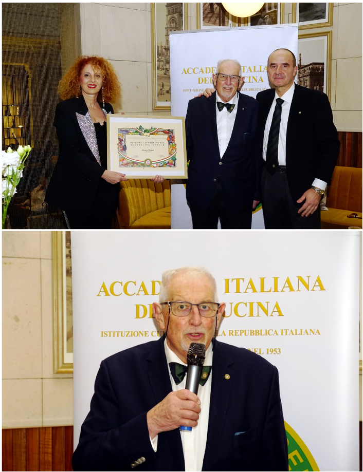 Si è svolto a Budapest il seminario “Longevità in buona salute: il ruolo della dieta”, organizzato dal Comitato Dante Alighieri di Budapest. Al seminario erano altresì presenti l’Ambasciatore d'Italia in Ungheria nonché Accademico Onorario, S.E. Manuel Jacoangeli, il Console della Ambasciata di Spagna, il Presidente e Vicepresidente della Camera di Commercio Italiana per l’Ungheria, il prof. Győző Szabó, già direttore dell’Accademia d'Ungheria a Roma e il prof. Endre Linczényi docente in ritiro dell’Universitá Elte. Dopo gli onori di casa della dott.ssa Agnese Jenei, membro del Consiglio Direttivo del Comitato Dante Alighieri di Budapest ed il saluto del Presidente, dott.ssa Edit Császi, il Delegato Michele Fasciano, unitamente al Vice Delegato Maria Carmela Gaetani Aronica, in qualità di conferenzieri, hanno aperto il seminario con la presentazione ”L’evoluzione della Dieta Mediterranea: il ruolo centrale della Accademia Italiana della Cucina”. Dopo un breve ma esaustivo cenno sull’Accademia, la conferenza ha sviluppato i concetti principali intorno alla necessaria centralità del dialogo alimentare. Ciò ha consentito, nella seconda parte dell’intervento, di definire gli aspetti fondamentali della Dieta Mediterranea il cui studio e sviluppo è sempre volto alla ricerca di un miglioramento della qualità della vita del singolo individuo. Tema ripreso successivamente dal prof. Roberto Volpe, medico, ricercatore del Consiglio Nazionale delle Ricerche (CNR) di Roma, docente universitario nonché responsabile di progetti nazionali e internazionali, che ha tenuto una brillante ed interessantissima conferenza sul ruolo della dieta e sulle sue implicazioni su salute e longevità. Una sobria e salutare cena all’italiana presso l’attiguo ristorante italiano Pomo d’Oro, organizzata dal Comitato Dante Alighieri, ha concluso la piacevole serata.
