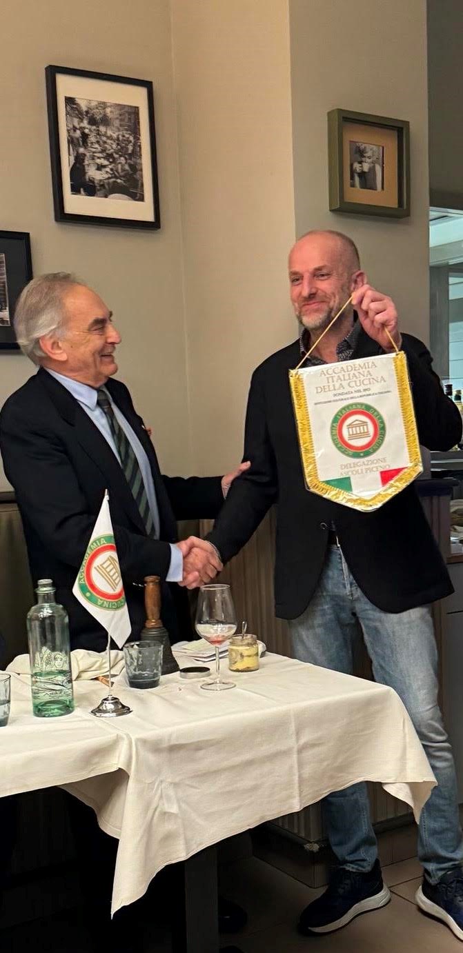 Con la collaborazione del Simposiarca Luciano Vesperini, la Delegazione di Ascoli Piceno ha organizzato un convivio presso il ristorante “Antico Caffè Soriano” di San Benedetto del Tronto (AP), imperniato sul baccalà, un cibo che in passato era appannaggio di mense poco abbienti, ma che oggi è un piatto di spicco. Lo chef Davide Argieri ha proposto elaborati che hanno ottenuto grande apprezzamenti, anche per quanto attiene all’aspetto. In particolare il primo piatto e, ancor più il secondo piatto, il baccalà in umido con patate che ha ripreso la tradizione locale della “Quaresima marchigiana”. I vini in abbinamento, che hanno soddisfatto le esigenze dei commensali, sono stato forniti da un’Azienda del confinante Abruzzo, l’Azienda Agricola Paride D’Angelo, con un bianco denominato “Cococciola Abruzzo” ed un “Cerasuolo d’Abruzzo”. Sono intervenuti con propri contributi Paolo Monti, AD di una delle più grandi aziende importatrici di baccalà in Italia, sulla tipologia e qualità dei merluzzi sottoposti alla “salagione” per divenire baccalà, nonché dei mercati internazionali del prodotto in parola, e dell’Accademico on. e membro del Centro Studi Franco Marenghi Leonardi Seghetti, che si è soffermato in particolare sulle portate del menu. La conclusione della serata è stata affidata al CT Marche, Sandro Marani. Ha partecipato anche il Delegato di Jesi-Fabriano- Senigallia Pietro Aresta.