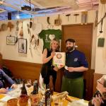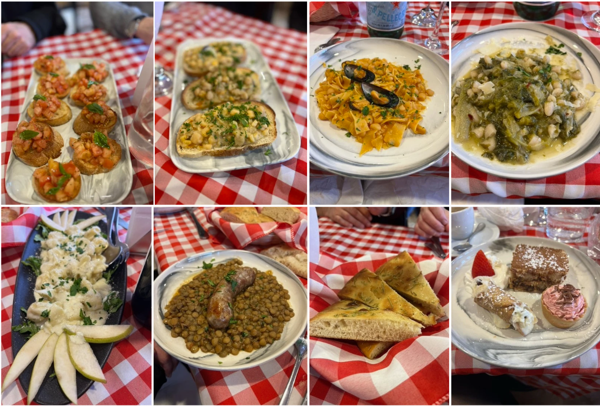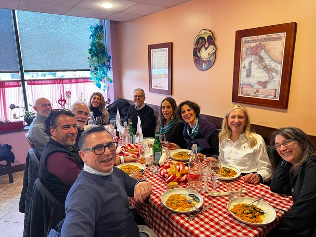Il pranzo al ristorante "Mamma Lena" è stato un vero successo con grande partecipazione da parte di tutti i commensali, non solo per la qualità del cibo, ma anche per l’ospitalità della chef Maddalena Borrello e del figlio Giovanni che hanno raccontato la loro storia e reso tutti gli Accademici partecipi del percorso da loro seguito. La chef, mamma Lena (Maddalena), ha raccontato anche come negli anni Ottanta fosse stata la cuoca di Giulio Andreotti ed altre personalità di rilievo a Roma, riportando tutti indietro nel tempo. Il locale è accogliente nella sua semplicità, con le tovaglie a quadri e i grissini torinesi sulla tavola, tutti particolari che hanno permesso agli Accademici di sentirsi a casa, pur essendo a migliaia di chilometri di distanza. Le portate, abbondanti, hanno riportato alla memoria la vera cucina casalinga, verace e tradizionale. Un particolare e unanime riconoscimento è andato alle pappardelle spezzate (fatte in casa) con le cozze, così come alla scarola con i fagioli. Meno soddisfazione per i dolci. Un pranzo riuscitissimo, grazie al buon cibo e all’accoglienza fantastica.