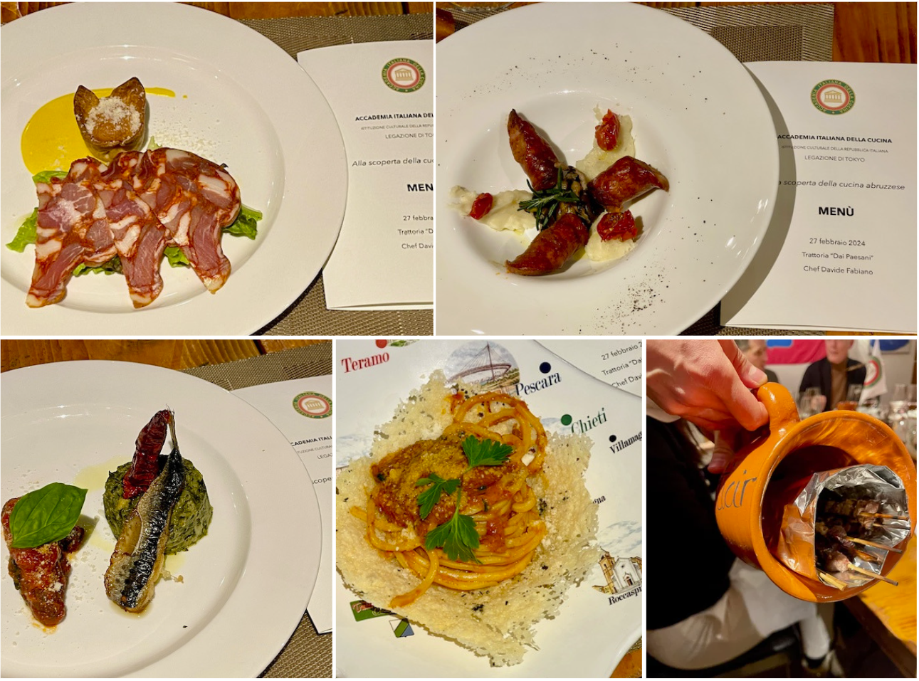 Una riunione conviviale lungamente rimandata nonostante la fama della trattoria “Dai Paesani” suggerisse una visita tempestiva. L’attesa ha accresciuto le aspettative che non sono state assolutamente deluse. Una cucina abruzzese semplice, di casa ma molto curata e ben equilibrata. Un abbinamento di vini, rigorosamente abruzzesi, ben pensato e ben riuscito. Un rapporto qualità e prezzo ottimo. Uno chef e patron, Davide Fabiano, che è piaciuto moltissimo per la competenza sia in cucina sia nella gestione dei commensali, sempre trattati come ospiti e mai come clienti. Molto apprezzati la ventricina dell’alto Vastese, servita tra gli antipasti, e gli spaghetti alla chitarra con ragù all’abruzzese, immancabili gli arrosticini. Hanno completato la splendida atmosfera un gruppo di Accademici e di amici felici di ricominciare le visite ai ristoranti. La serata si è conclusa con una degustazione a sorpresa di liquori abruzzesi fatti in casa, offerta dallo chef.