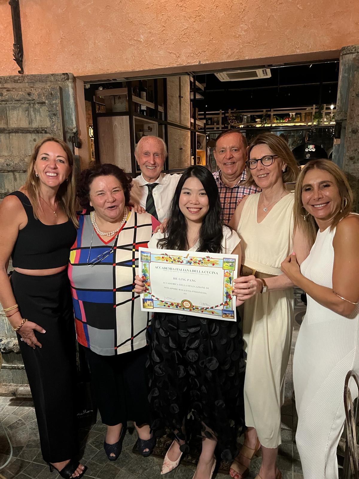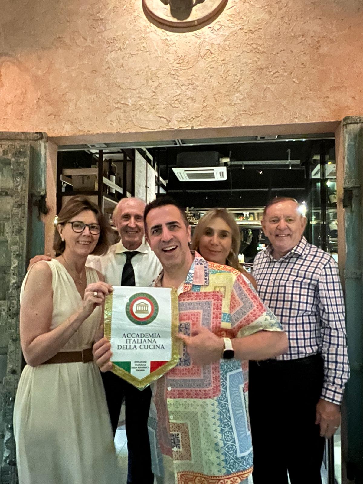 Gli Accademici si sono riuniti al ristorante “La Bottega Enoteca”, situato nel vivace quartiere di Joo Chiat. La scelta da parte della Simposiarca Maurizia Debiaggi non è stata casuale: il ristorante pizzeria si è recentemente assicurato il 19° posto nella prestigiosa classifica 50 Top Pizza Asia Pacific 2023, un risultato notevole nel mondo culinario. Il menù scelto, prevalentemente basato su gli impasti italiani, pizza, focaccia di Recco e gnocco fritto, ha riscosso un alto gradimento da parte di tutti i commensali. Il Delegato Giorgio Maria Rosica ha introdotto la serata con un saluto a tutti i partecipanti tra cui alcuni graditi ospiti: Anna Marmiroli, Delegata dell’Accademia a Reggio Emilia; Mauro Catellani, Accademico di Reggio Emilia ed il Prof Weibiao Zhou, professore ordinario e capo del Dipartimento di Scienze e Tecnologie Alimentari dell’Università Nazionale di Singapore (NUS). IL momento culturale ha visto protagonista Anna Marmiroli che ha intrattenuto i presenti con un interessante racconto sulla storia e tradizione dello gnocco fritto. Durante la serata è stata accolta nella Delegazione una nuova Accademica, He Ling Pang, giovane singaporiana a cui l’Accademia ha trasmesso il valore della tradizione gastronomica e del cibo italiano. La serata si è svolta all’insegna di allegra convivialità e si è conclusa con l’uscita in sala dello chef Antonio Miscellaneo che ha spiegato i “segreti” della sua pizza ed ha risposto alle numerose domande degli ospiti.