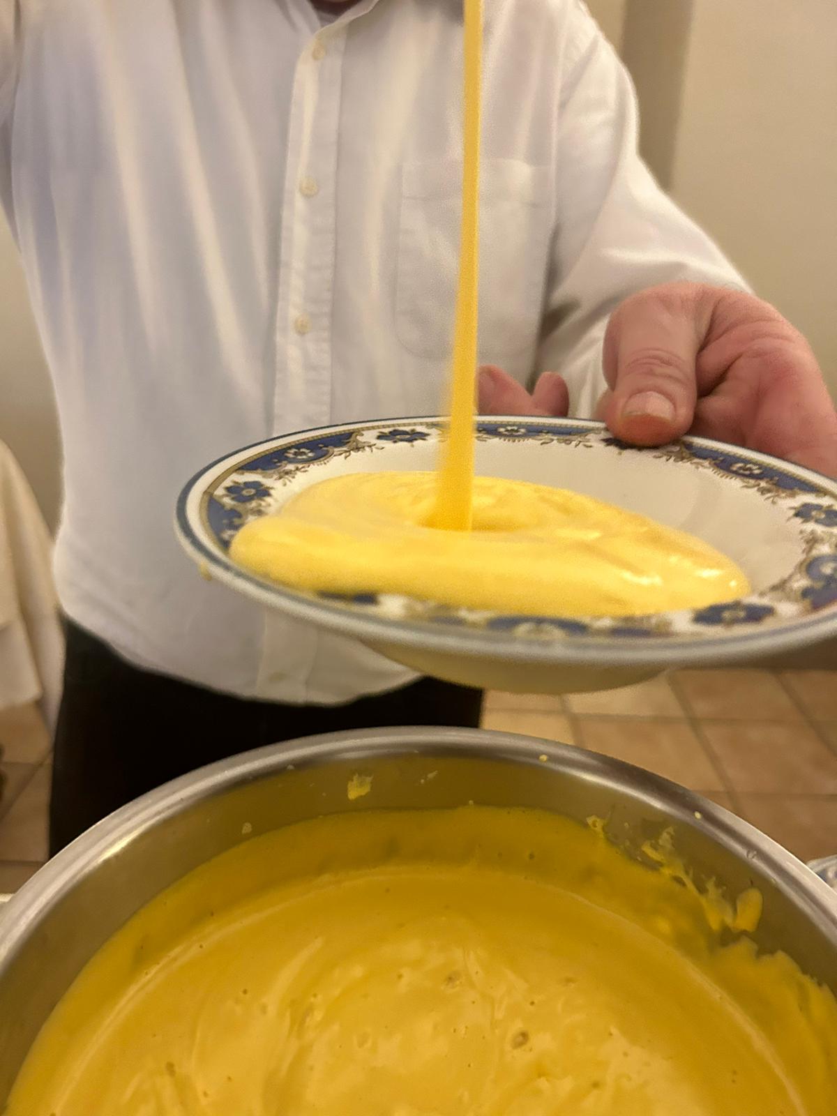 Dopo la visita riservata alla Delegazione all’importante mostra di Van Gogh, si è passati alla tavola nello spirito della tradizione marinara triestina presso il ristorante Ai Fiori. Dopo i tre antipasti classici, il Simposiarca estetologo Smotlak ha preso lo spunto dei colori dei quadri per trattare i 5 sensi più 1 con i quali approfondire l’esperienza enogastronomica. Il Simposiarca Mulas ha tracciato la storia del vecchio savor dal 400 e del più nuovo alla busara dall’800 istro-dalmato. Piatto forte il branzino in court-boullion magistralmente cotto e profumato di mare che ha riscosso il più ampio plauso. Epilogo con la gloria austro-ungarica torta Rigojanci. Impeccabile il servizio, ottimi vini in abbinamento.