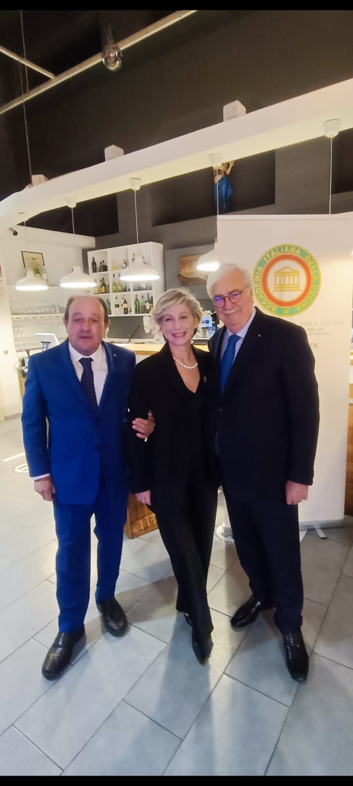 La Delegazione di Crotone si è riunita per festeggiare l’ingresso di nuovi soci al ristorante “Porto vecchio”, banchina sud dell’antico approdo. È stata una serata all’insegna del buon gusto, di una misurata eleganza e per nulla formale e con numerosi ospiti tra cui S.E. Rev.ma Mons. Serafino Parisi, Vescovo di Lamezia, sempre presente alle iniziative della Delegazione di Crotone. La serata ha avuto due momenti: la cerimonia dell’ingresso dei nuovi soci, quindi la degustazione di un menu a base di prodotti locali accuratamente scelti. Ecco i sei nuovi Accademici accolti dal Delegato Sergio D’Ippolito al suo sesto anno di guida del sodalizio: Raffaele Librandi, Angela Grisi, Stano Zurlo, Dorina Bianchi, Giovanpaolo Lucifero, Antonio Giglio Verga. “La cucina italiana e i suoi prodotti – ha ricordato Sergio D’Ippolito – sono un bene prezioso che va difeso: ma da chi davvero ne conosce la storia e la cultura”. A sorpresa, poi, ha annunciato l’intervento dell’assessore regionale all’agricoltura Gianluca Gallo seguito dalla presentazione di due nuove opere del Maestro Gerardo Sacco, Accademico Onorario. Il Delegato Sergio D’Ippolito ha omaggiato l’assessore con il libro edito per i 70 anni di vita dell’Accademia. La preparazione delle pietanze con esclusivo utilizzo di prodotti e materie prime regionali è stata eseguita in maniera impeccabile dallo chef Claudio e dalla maestra di cucina Anna.
