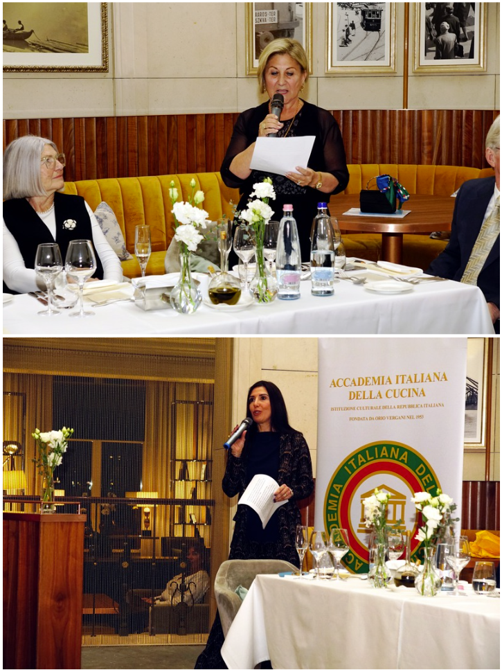 La Delegazione di Londra si è riunita nei locali della Cantinetta Antinori, ristorante della omonima famiglia, di recente apertura. Una cinquantina i partecipanti, fra cui il Console Generale Domenico Bellantone, il Direttore dell'ICE/ITA Giovanni Sacchi e il nuovo Direttore dell'Istituto Italiano di Cultura, Francesco Bongarrà, al quale il Delegato ha dato il benvenuto a Londra a nome dell'Accademia. Ai presenti, il Delegato ha consegnato una copia dell'articolo del Presidente Paolo Petroni, pubblicato nella prestigiosa rivista "Sale e Pepe", illustrando i continui progressi dell'Accademia a livello di comunicazione. È stato poi degustato un menu di grande tradizione toscana, iniziato con salumi di cinta e formaggi della zona, crostini con fegatelli e pappa al pomodoro, seguiti da rigatoni al sugo di cinghiale e l'immancabile Fiorentina, che ha suscitato commenti entusiasti. I vini serviti, della migliore qualità Antinori, sono stati illustrati dal Direttore del locale Salvatore. Per finire, cantucci con Vin Santo; a questo punto la Consultrice Silvia Mazzola, Simposiarca assieme alla Consultrice Jacqueline Mc Kay, ha brillantemente raccontato la storia del cantuccio dai secoli scorsi a oggi, fornendo anche copia di una ricetta pubblicata dal Presidente Petroni sul suo libro "La vera cucina toscana". Serata di grande convivialità, finita con grandi applausi allo Chef Vittorio, al Direttore Salvatore, a tutto il personale e alle Simposiarche per l'impeccabile organizzazione.