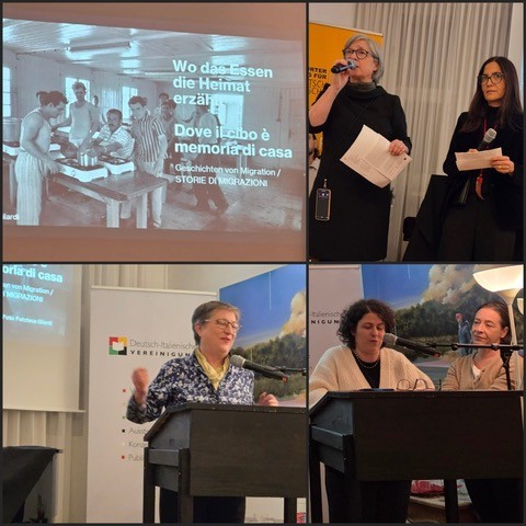 L’incontro “Dove il cibo è memoria di casa: storie di migrazioni”, tenutosi in occasione del 70° anniversario dell’Accordo Italia–Germania sul reclutamento della manodopera italiana, ha offerto un’importante occasione di riflessione sul ruolo del cibo nei processi migratori e nella costruzione delle identità culturali. Il cibo è stato analizzato non solo come pratica alimentare, ma come dispositivo simbolico capace di veicolare memoria, appartenenza e continuità affettiva. I contributi hanno evidenziato come, nell’esperienza migratoria degli italiani in Germania, il cibo abbia svolto una funzione di mediazione tra il paese d’origine e quello di accoglienza. Un piatto familiare o una provvista nella “valigia del migrante” si configuravano come forme di ancoraggio identitario, capaci di preservare il legame con la dimensione domestica. È stato inoltre ricostruito il percorso di integrazione della cucina italiana nel contesto tedesco: inizialmente segnata da stereotipi e diffidenze, oggi è riconosciuta come modello di convivialità e qualità, confermando il ruolo delle pratiche alimentari quali vettori di integrazione culturale. In vista del possibile riconoscimento UNESCO della Cucina Italiana, è emerso il legame profondo tra tale candidatura, le migrazioni italiane e il contributo delle comunità all’estero alla diffusione di una tradizione gastronomica transnazionale. Sono intervenute: Laura Melara-Dürbeck (AIC – Delegazione di Francoforte), Prof. Dr. Edith Pichler (Università di Potsdam), Prof. Dr. Stephanie Neu-Wendel e Dr. Maria Giacobina Zannini (Università di Mannheim).