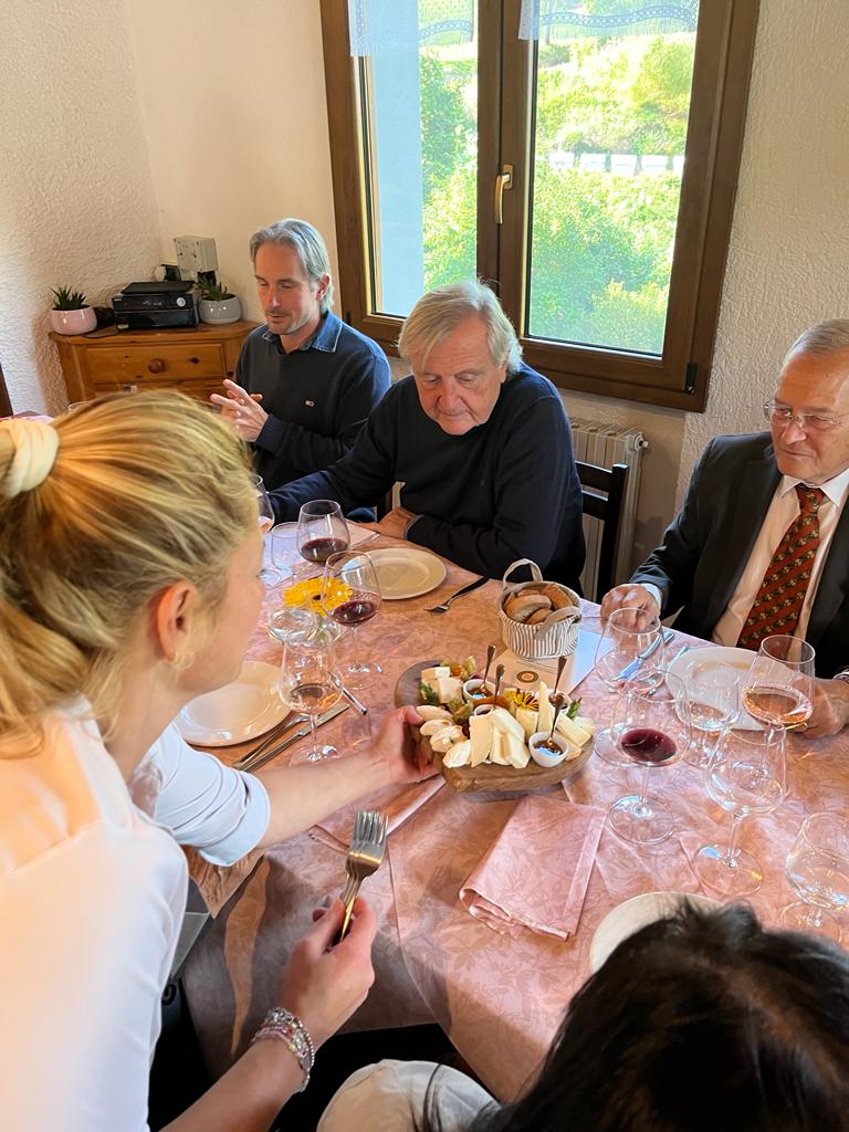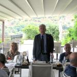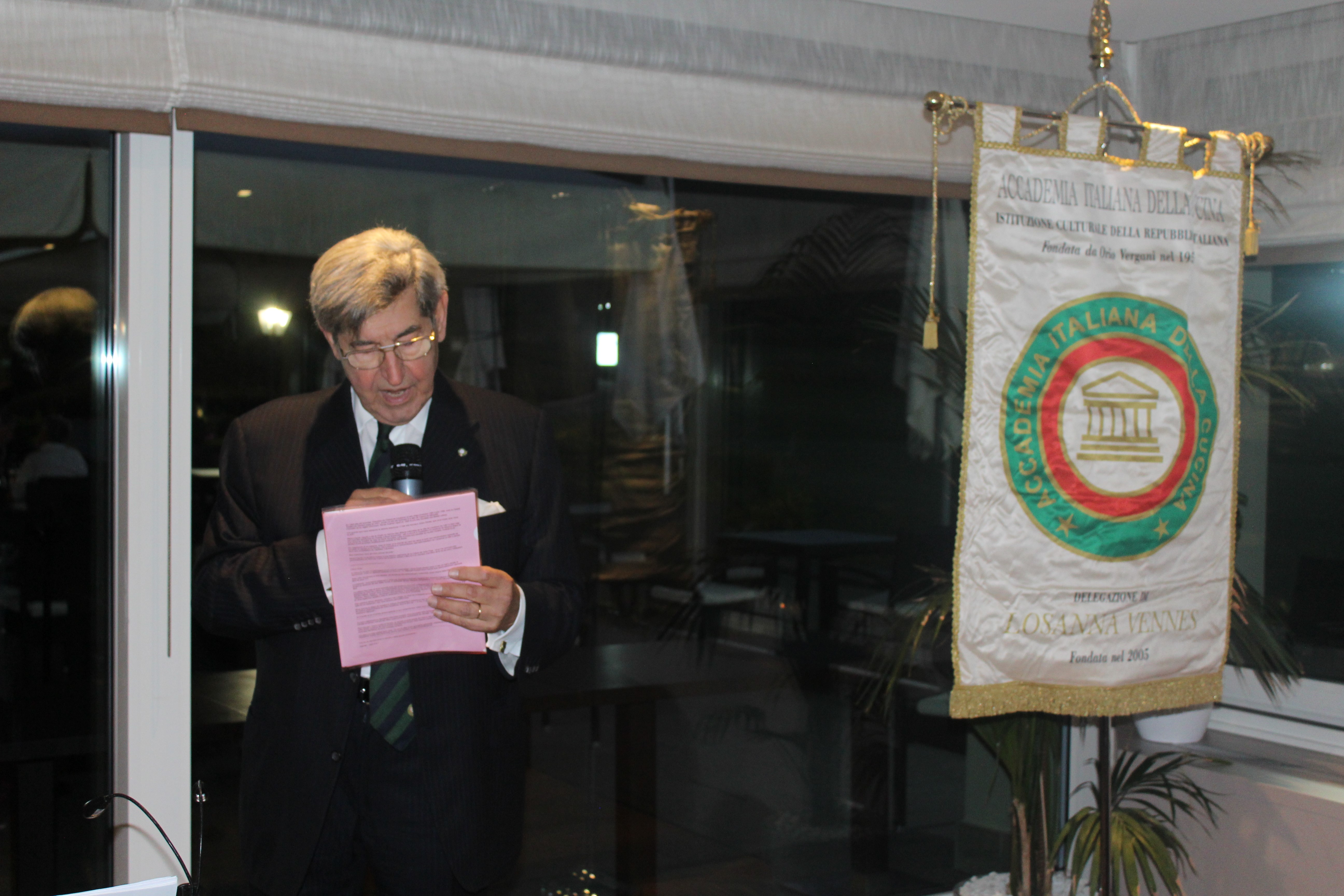Nell’elegante ristorante del Golf Club di Losanna, il vice Delegato Renato Galletti ha organizzato un incontro della Delegazione in onore dei nuovi Accademici di Losanna-Vennes. Julio Fernandes, responsabile del servizio di sala, e Eric Meylan, chef della brigata di cucina, con la loro competenza, esperienza e saper fare, hanno raccolto il plauso dei numerosi presenti. È stata l’occasione per il Delegato Alessandro Caponi di fare un breve bilancio della vita della Delegazione. Il menu servito, semplice, armonioso, ricco di sapori, profumi e colori, era composto da un aperitivo caldo (mini pizza e mini ramequin) e freddo (bruschetta e verrine di gaspacho con soppressata calabra) assolutamente appetitoso, un filetto di branzino su letto di misticanza di perfetta cottura e bella presentazione, un vitello arrosto fondente in bocca, con fricassea di bosco, patate rosolate e legumi, e da una Tarte Tatin con gelato di vaniglia, profumata e cotta a puntino. Graditissima la presenza del Console Generale d’Italia Tomaso Pietro Marchegiani. I commenti finali della serata sono stati affidati all’Accademico Vito Marques. Il piatto d’argento dell’Accademia è stato offerto ai responsabili del servizio di sala per la celerità e l’eleganza del servizio a tavola e allo chef della brigata di cucina per l’accuratezza del suo lavoro.