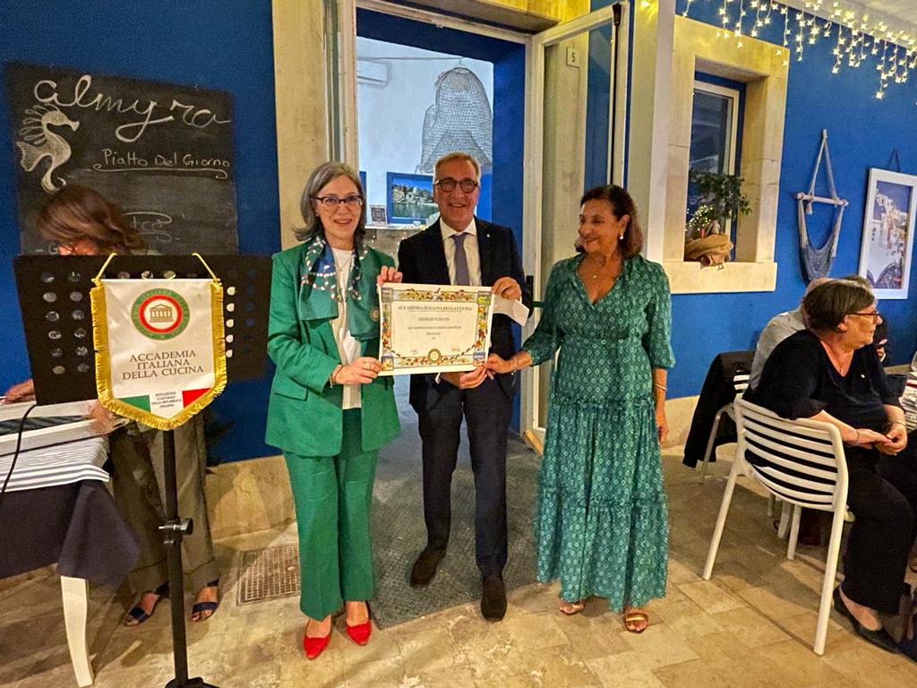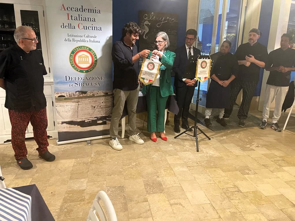 Riunione conviviale della Delegazione di Siracusa presso il ristorante Almyra (foto 1; 2), tipico locale marinaro in riva al mare situato in un contesto rilassante. Piatti semplici e saporiti e nel contempo raffinati con particolare attenzione alla materia prima. La cena è stata preceduta da un’interessante relazione del Direttore del Museo del Mare di Siracusa e di un pescatore locale, tenuta in prossimità del molo con sullo sfondo le barche impegnate nella pesca della lampuga, pesce di fine estate. Durante il convivio sono stati presentati due nuovi Accademici: Giorgio Iurato (foto 3) e Francesco Pusateri (foto 4).
