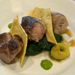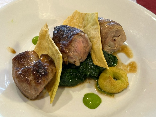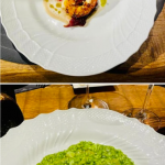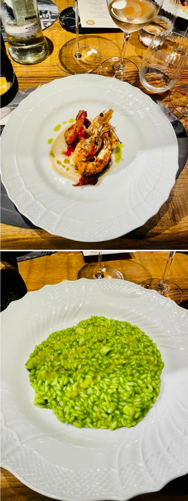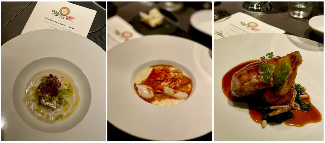 Alla ripresa delle attività accademiche, la Delegazione della Versilia Storica ha scelto di ripartire da un locale appena entrato a fare parte nella ristorazione versiliese: il ristorante “Da Gigi” a Tonfano, Marina di Pietrasanta. I Simposiarchi Veronica Baldi, Stefano Pera e Gian Luca Morello hanno individuato questa nuova realtà gastronomica nata nel 2022. Tre giovani ragazzi: Andrea, Davide ed Emiliano, cresciuti in alcune delle tavole più prestigiose della ristorazione versiliese, ripropongono in un ambiente curato e raffinato una cucina con prodotti locali ma con una nota creativa che la diversifica dal panorama esistente. I piatti proposti sono stati accompagnati da un’attenta scelta di vini. La piacevole serata si è conclusa con i ringraziamenti e i sinceri apprezzamenti per la cucina con la consegna ad Andrea, Davide ed Emiliano, da parte della Delegata Anna Ricci, del guidoncino e volumi dell’Accademia (foto 1). Alla serata erano presenti vari ospiti tra cui la Delegata del Mugello Monica Sforzini e Accademico Stefano Faucci. Foto 2. Antipasto: gambero alla piastra su insalata di fagioli schiaccioni e cipolla caramellata; primo piatto: risotto con seppie, bietola e composta di limone. Foto 3. Secondo piatto: bianco di branzino con spuma di patate e galletti. Foto 4. Dolce: cheese cake con pecorino del Mugello e salsa di cachi.