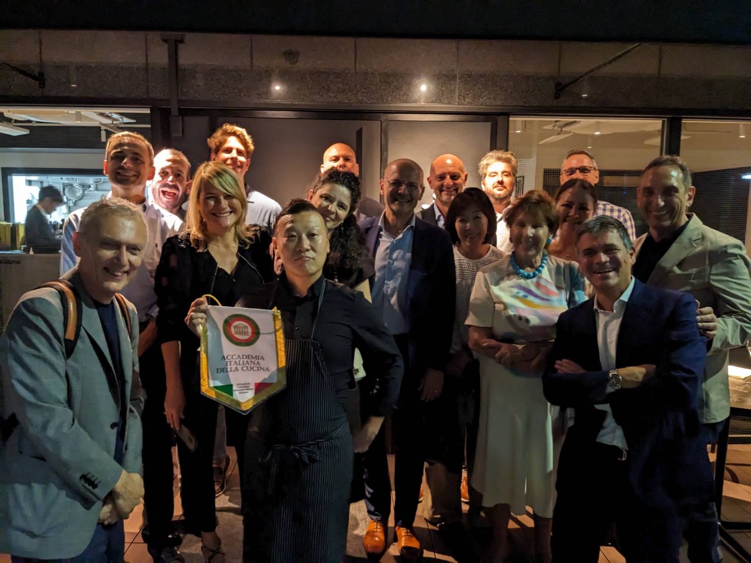 La riunione conviviale con cui gli Accademici di Tokyo hanno iniziato i festeggiamenti per i 70 anni dell’Accademia Italiana della Cucina li ha portati a scoprire un ristorante di recente apertura: Le Api Osteria. Il proprietario e chef, Hide Matsumoto, dopo aver vissuto per oltre 20 anni in Italia ed essere stato oltre 12 anni il sous-chef dello chef milanese Davide Oldani, è tornato in Giappone per avviare questo locale. È stato degustato un ricco menù che ha colpito molto positivamente i commensali. Particolare apprezzamento per i bigoli ai mirtilli con ragù d’anatra e per la frizzante accoglienza dello chef, sempre felice di poter avere nel suo locale italiani e amanti della buona cucina. La cena conviviale è stata l’occasione per festeggiare l’ingresso ufficiale della nuova Accademica Loredana Cesarino.