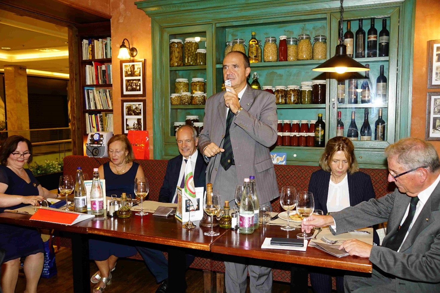 Parte di una catena di 4 ristoranti, OK ITALIA ARENA è posizionato strategicamente all’interno di uno dei maggiori centri commerciali di Budapest. Il menù è stagionalmente aggiornato con ingredienti di primissima qualità e offre a prezzo adeguato una vasta selezione di pietanze sia della tipica tradizione italiana sia rivisitati. La proposta conviviale concordata tra il Simposiarca Ilona David e lo chef ha rispettato le aspettative dei commensali per armonia di gusti e combinazione di sapori. Il Vice Delegato Alessandro Balli ha relazionato sul tema “Accoppiare con gusto. Cibo e vino: l’arte di un abbinamento perfetto”. Eccellente e cordiale il servizio. Perfetto e di qualità l’abbinamento dei vini serviti.