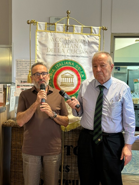 La sala conferenze di Palazzo Robellini, gremita in ogni suo posto, ha visto la consegna del prestigioso Premio “Dino Villani” a Giovanni Verdese della pasticceria Canelin per il torrone di Visone “Canelin” che "Nani" realizza con passione da 75 anni. Presenti alla premiazione il Sindaco di Acqui Terme Danilo Rapetti, il Sindaco di Visone Manuela Delorenzi, l’Ass. Regionale all’agricoltura e cibo Marco Protopapa, il Maggiore dei Carabinieri Gabriele Fabian oltre ad altri componenti della locale Amministrazione. A seguire, il convivio della Delegazione Alessandrina presso il ristorante Parisio 1933 di Acqui Terme, locale la cui storia e tradizione è stata ripercorsa dal Simposiarca Consultore Giovanni Costa. Una ristorazione che, come sottolineato dal Delegato Matteo Pastorino, rispecchia i valori della tradizione gastronomica, a cui il giovane chef Nicolò Conigliaro abbina una cucina anche di innovazione e le cui realizzazioni hanno riscontrato il plauso degli Accademici unitamente ai vini in abbinamento, fra tutti il Moscato di Strevi “Scrapona” anch’esso eccellenza del territorio della Provincia di Alessandria.