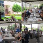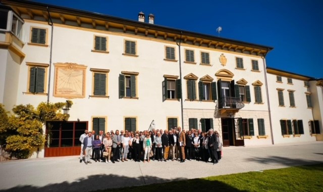Appuntamento per le due Delegazioni nella terrazza della Pieve di San Giorgio della Valpolicella con visita alla chiesa adiacente, risalente al 700 D.C, condotta dall’Accademico Pietro Canepari che ne ha ripercorso la storia molto articolata. Il programma ha poi previsto lo spostamento in una villa settecentesca di Negrar (VR) ricca di un parco secolare dove sono stati ricavate due vigne sperimentali di vitigni autoctoni. È seguita poi la visita alla cantina dell’azienda vinicola, fatta nel primo novecento e aggiornata con soluzioni interessanti per la conservazione ottimale dei vini. L’Accademico Roberto Fostini ha voluto ricordare la figura di Berto Barbarani, un eminente poeta dialettale veronese, che aveva approfondito le ricerche sulla Valpolicella facendola conoscere con il libro “La valle degli Arusnati”. Il pranzo è stato predisposto all’interno della villa Sartori 1898 con un menu realizzato in catering dalla cuoca Ada Riolfi, titolare di un vicino ristorante. Perfetta l’esecuzione del risotto al vino Recioto ingentilito da una leggera nota di cioccolato; un piatto che, insieme al risotto con il vino Amarone, esprime la vera tradizione del territorio della Valpolicella. Molto interessante anche l’intervento del prof. Antonio Ferrieri che ha dimostrato come cibo e vino a tavola siano inevitabilmente condizionati dalle circostanze del momento. È stato un incontro molto proficuo sia sotto il profilo culturale sia enogastronomico vissuto in un’atmosfera di piacevole convivialità.