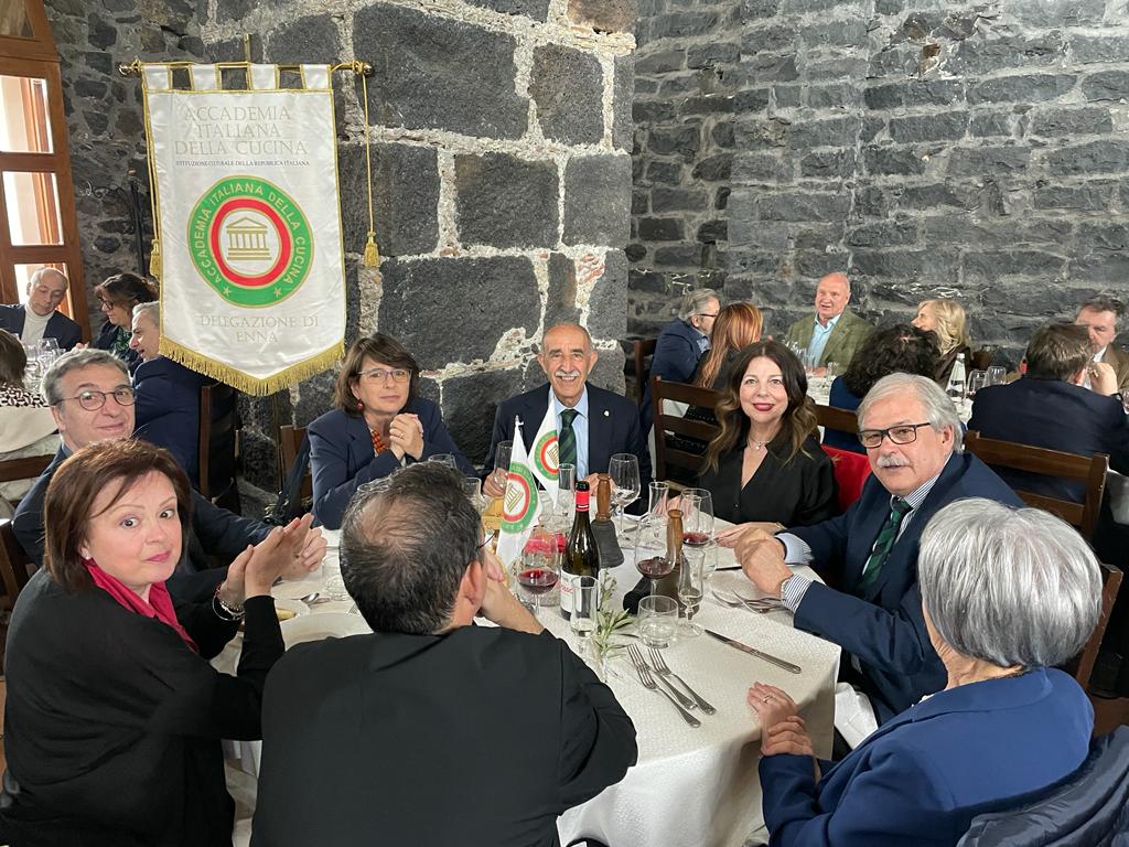 Nell’imminenza delle festività pasquali le Delegazioni di Enna e Catania hanno organizzato insieme la conviviale per il tradizionale scambio degli auguri nel giorno della domenica delle Palme. Ad ospitare i più di cento partecipanti delle due Delegazioni, alla presenza anche del Consigliere di Presidenza Ugo Serra, è stato il ristorante “L’Abbazia” di Santa Maria di Licodia in provincia di Catania, antico monastero benedettino fondato nel XIII secolo, dalle complesse vicende storiche che oggi viene gestito, dopo averne curato il restauro, dalla famiglia Abbate. Prima della colazione Padre Archimede ha suggerito ai partecipanti alcune riflessioni sul significato della Pasqua e ha benedetto i tradizionali rami di ulivo. All’interno della grande sala ricavata nelle mura del monastero, circondati dalle attenzioni di uno staff professionale e cordiale, gli Accademici hanno degustato un menu apprezzato da tutti sia per la qualità delle pietanze sia per l’originalità degli accostamenti. I Delegati Marina Taglialavore e Gianclaudio Tribulato si sono ampiamente complimentati con il bravissimo chef Moreno Emmi e il suo staff per la cucina di alta qualità e per la cura nei dettagli. Una conviviale riuscitissima sotto tutti gli aspetti e, soprattutto, un bellissimo momento di incontro tra le due Delegazioni che hanno scelto di passare insieme questa giornata.