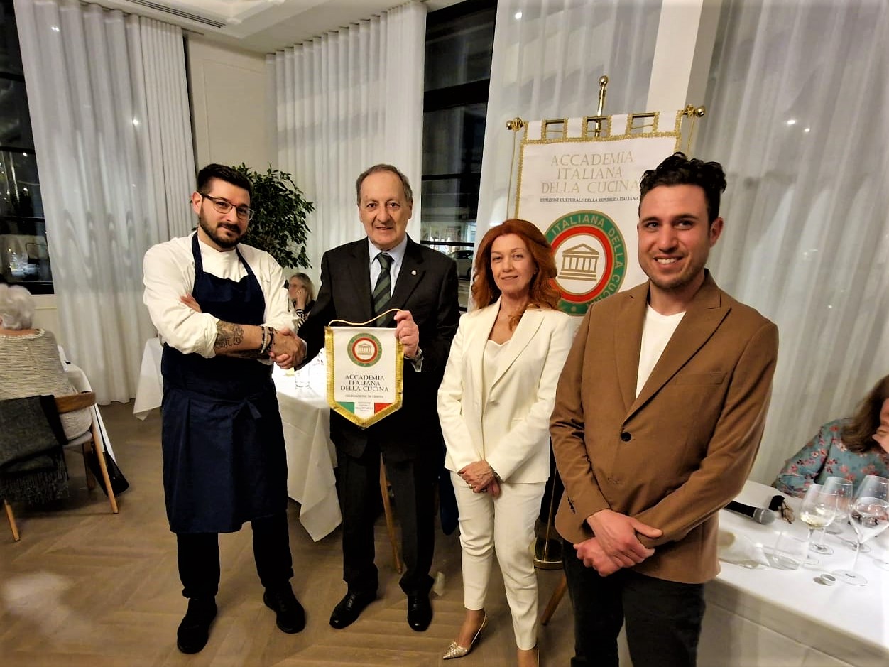 Si è voluto celebrare l’arrivo della nuova Console Generale Raffaella Valentini presso un ristorante di sicuro successo sia per l’ambiente elegante sia per il cibo, rivisitando il locale “Via Alloro” dei fratelli Drago, divenuti un’istituzione in questa città dai mille aspetti culturali ed etnici. Oltre agli Accademici sono stati invitati alcuni ospiti esterni considerato il momento di grande ufficialità. Prima di dare inizio al convivio, la Delegata Mariella Salvatori ha dato il benvenuto alla illustre ospite accompagnata nell’occasione dalla Console Lorenza Errighi, illustrando alcune delle notizie apparse nella newsletter AIC. La Console Generale nel ringraziare, ha annunciato il tema dell’anno relativo alla Settimana della Cucina Italiana 2023, enfatizzando l’importanza del cibo sano e la risonanza delle nostre tradizioni in tutto il mondo. Ha inoltre ricordato che quest’anno ricorrono i 70 anni della costituzione dell’ Accademia e l'importanza della sua opera di promozione. Infine la Vice Delegata Paola Lorenzi ha illustrato il significato e l’importanza della tradizione delle uova pasquali. Nell’augurare una Buona Pasqua sono stati consegnati i volumi in italiano e in inglese rispettivamente alla Console Generale e alla Console. A fine serata è stato consegnato il volume “la Tavola del Contadino” al propietario.