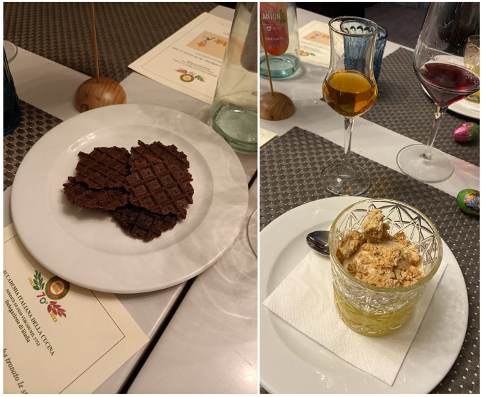 Eleganza abbinata a sobrietà in un ambiente esclusivo nel cuore dell’isola di Ortigia. I piatti presentati dagli chef Salvatore e Roberta del ristorante Regina Lucia hanno coinvolto la vista, l’olfatto e il gusto. Un’esplosione di sapori del territorio: dall’ olio abbinato al pane caldo, al tartufo profumatissimo di Palazzolo Acride, al vitello tenero come burro. Una giornata all’insegna della tradizione pasquale siciliana con distribuzione finale di “pupu ccu’ l’ovu” preparato artigianalmente dalla nonna Rita di Palazzolo Acreide. Il tutto in un clima rilassato e allegro.