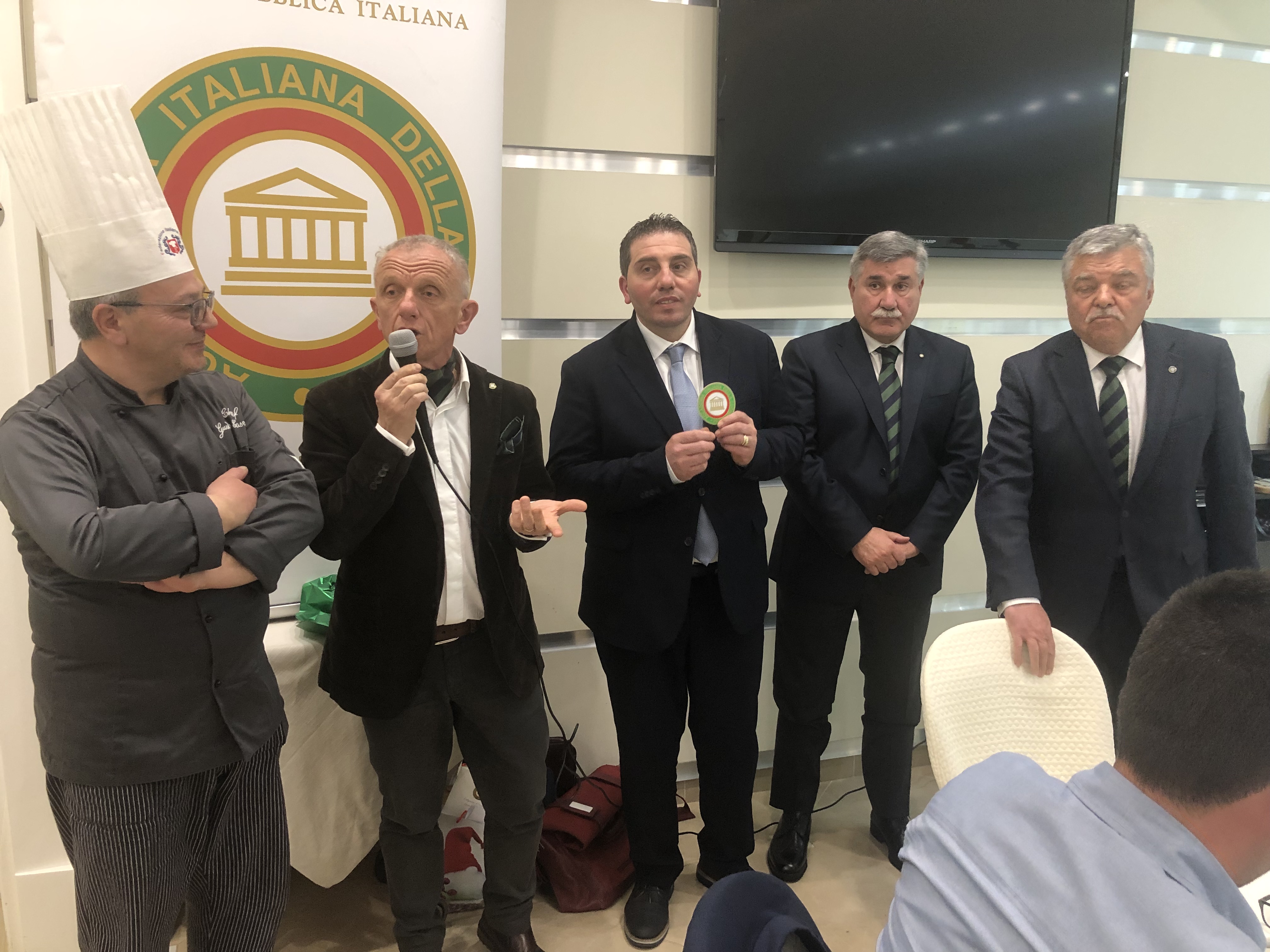 Il Coordinamento Territoriale Romagna al gran completo e la Delegazione della Repubblica di San Marino hanno organizzato il convegno “I formaggi in Romagna ed il loro uso in cucina”. Relatori d’eccezione Massimo Montanari, docente universitario Accademico Onorario di Imola, Renato Brancaleoni affinatore di importanza mondiale, Pietro Rocculi Docente Universitario, Giuseppe Guidi Presidente della Centrale del Latte della Repubblica di San Marino, Azienda di Stato e lo chef Antonio di Cesare. Relazioni di grande spessore culturale storico, tecnico e gastronomico, hanno catturato l’attenzione del 145 iscritti che hanno seguito con grande interesse gli argomenti trattati nelle esposizioni dei relatori. Dopo la parte teorica, una giornata perfetta, tersa e soleggiata, ma con temperatura gradevole, ha concesso di effettuare il buffet all’aperto con gran trionfo di prodotti tipici della Romagna, ma soprattutto con degustazione dei formaggi del territorio di qualità eccellente e sopraffina con riscontro positivo, compiaciuto ed estasiato dei gourmet intervenuti soprattutto per il formaggio di fossa. La Conviviale vera e propria si è poi svolta negli ambienti interni dell’Hotel Aurelia ed è stata caratterizzata da un clima gioioso e dal piacere di stare insieme.