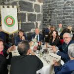 La Delegazione di Crotone si è data appuntamento nel paesino lungo la costa di Torre Melissa presso la bella e ben conservata Torre Aragonese (1500) per la Conviviale di Pasqua. Nella sala storica dei convegni della suddetta Torre gli Accademici e i graditi ospiti sono stati intrattenuti con una interessante e seguita conversazione da parte del Delegato avente per tema: “Non c’è Pasqua Cristiana senza Pasqua Ebraica“. La Delegazione si è poi trasferita nel cortile del Pozzo della stessa Torre dove è stato offerto un frizzante aperitivo con gustosissimi frittini. Quindi tutti nell’attiguo ristorante “Il Conte di Melissa“ dove si è dato inizio al convivio. Le pietanze sono state preparate con cura e nel pieno rispetto delle tradizioni culinarie della Pasqua del territorio. Già dagli antipasti con le tipiche preparazioni con asparagi e carciofi, alla storica Pasta “Chjina“ realizzata con gli zitoni spezzati, fino al capretto con patate al forno, e poi i dolci pasquali tipici del crotonese tra cui l’immancabile “Cozzupa“ e il tutto annaffiato dal classico vino di Cirò, tutti hanno avuto la piacevole sensazione di trovarsi coinvolti in un nostalgico pranzo dai sapori di una volta.