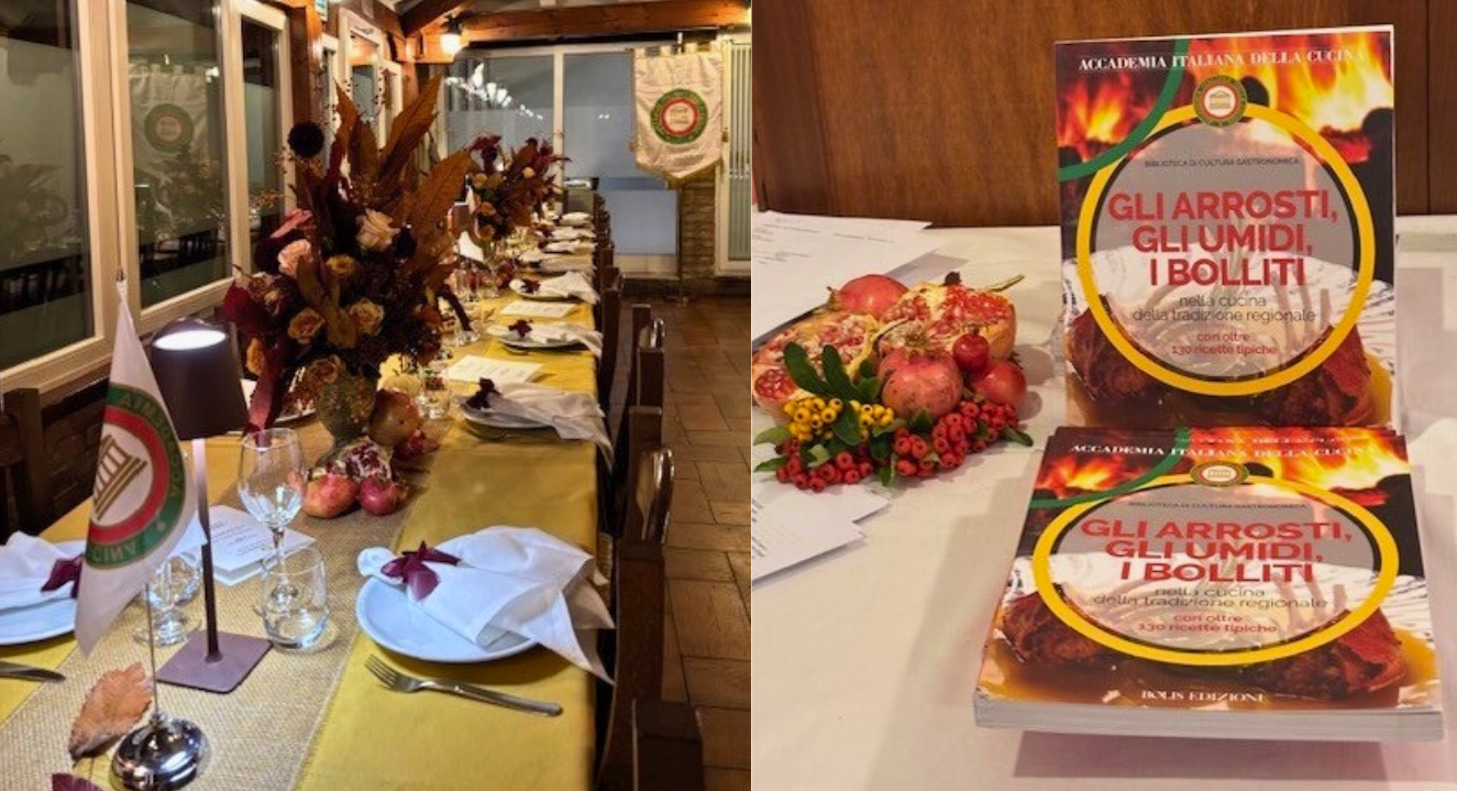 Il tema di quest’anno è stato interpretato dai Simposiarchi della Delegazione di Terni, Federico Carli e Giuseppe Malvetani, con uno sguardo ampio e coraggioso, capace di oltrepassare i confini territoriali per tracciare un percorso che ha attraversato tutto lo Stivale. Il viaggio gastronomico è iniziato con un bollito misto accompagnato da mostarda di Cremona, giardiniera e salsa verde, per poi proseguire con le mezze maniche alla coda alla vaccinara, simbolo del quinto quarto e della cucina popolare, capace di trasformare la necessità in virtù. Il secondo, un piccione ad arrosto morto con broccoletti ripassati, ha riportato il racconto alle radici umbre. Anche il percorso enologico, coerente e narrativo, ha avuto un ruolo centrale, così come l’olio extravergine “Nuovo” dell’Azienda Malvetani, a suggellare il legame con il territorio. Momento di particolare rilievo è stato l’intervento di Giuseppe Fatati, direttore del Centro Studi Territoriale Umbria dell’Accademia, che ha proposto una visione attuale della dieta mediterranea: non uno schema rigido, ma uno stile di vita sostenibile che unisce salute, territorio e comunità. La Cena Ecumenica si è così inserita in un più ampio progetto di valorizzazione della cultura culinaria italiana, arricchito quest’anno dall’ingresso del nuovo Accademico Andrea Carducci e dalla celebrazione dei 40 anni di appartenenza di Giulio Pallotta, esempio di dedizione e passione.