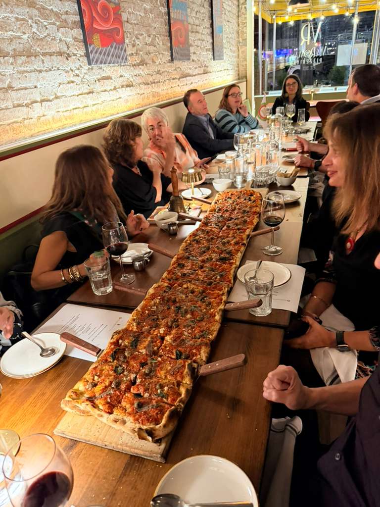La cena ecumenica di Tel Aviv si è svolta presso il ristorante Ernesto 90, con la cucina dello chef italiano Emanuele di Porto. L’evento è stato organizzato con un menù ispirato al tema di quest’anno, "gli arrosti, gli umidi e i bolliti". Durante la serata sono stati distribuiti libri accademici sull’argomento e uno di essi è stato donato al proprietario, Ernesto Marcheria, che da oltre vent’anni promuove il vero cibo italiano romano a Tel Aviv. L’Accademica Nessia Laniado ha condiviso aneddoti riguardanti arrosti, umidi e bolliti nella tradizione culinaria italiana. La scelta del ristorante Ernesto 90 per la cena ecumenica è stata motivata dalla sua reputazione come locale rappresentativo, in grado di offrire un autentico menù italiano di carni. Lo chef ha proposto come antipasto lingua salmistrata in salsa verde; per primi, tortellini in brodo e pappardelle al ragù con funghi porcini; per secondi, manzo, pollo e lingua bolliti, stracotto come umido e arrosto di manzo; infine, a conclusione della cena, crème caramel, il tutto accompagnato da Montepulciano d’Abruzzo. La serata si è rivelata molto riuscita, con la partecipazione di numerose personalità della vita pubblica di Tel Aviv e con la presenza di quasi tutta la Delegazione.