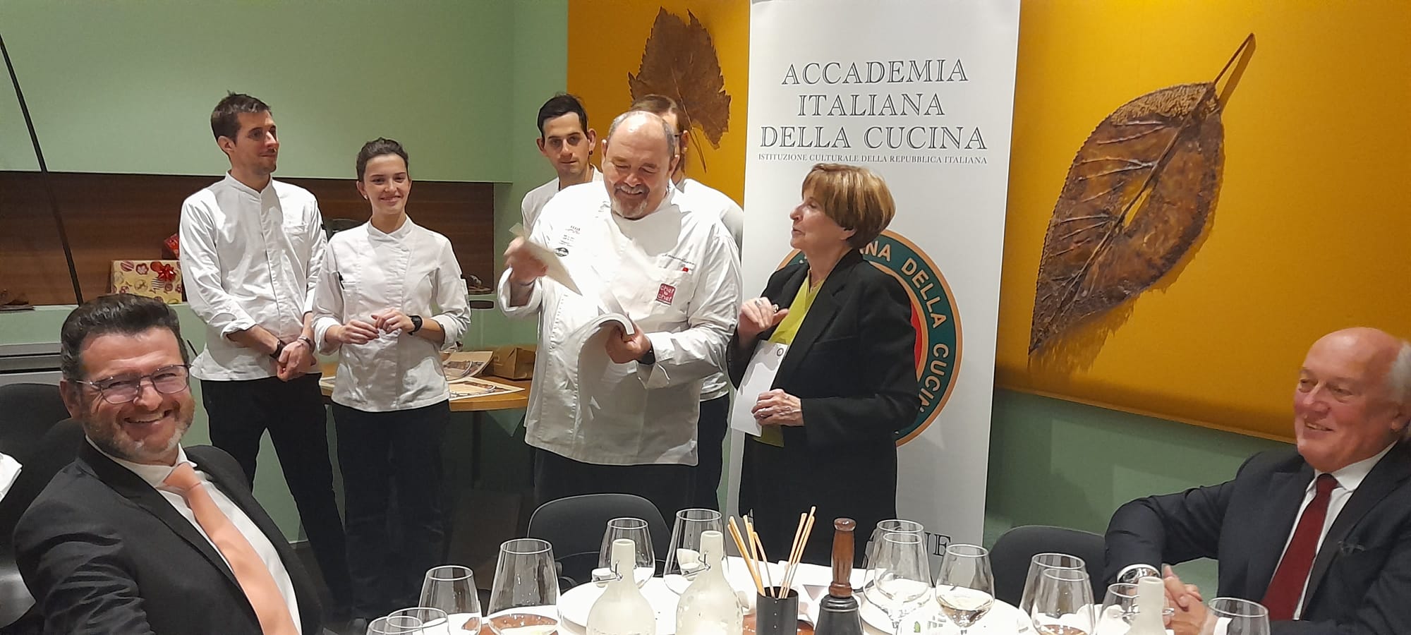 Appuntamento di alto livello per la prima riunione conviviale del 2023 della Delegazione, organizzata presso la “Trattoria Toscana”, un ristorante presente a Budapest da oltre vent’anni e luogo ideale per chi vuole assaggiare piatti della tradizione toscana rivisitati dalla creatività dello chef Mario Palermo. Il menu concordato con il Simposiarca Paolo di Franco ha suscitato il plauso incondizionato di tutti i presenti per sapiente preparazione, originalità degli accostamenti nel pieno rispetto della tradizione ed assoluta qualità dei prodotti utilizzati. L’Accademica Laura Bindi ha presentato una dotta relazione sul tema “Mangiare equilibrato è oggi possibile? Come comporre un pasto bilanciato”. Servizio eccellente. Ottimi i vini serviti.