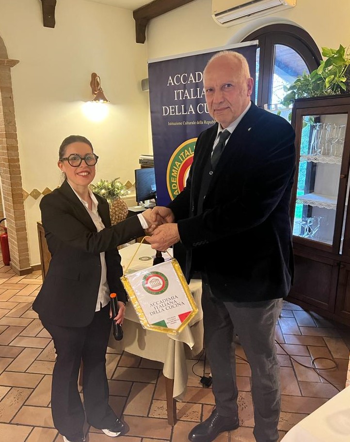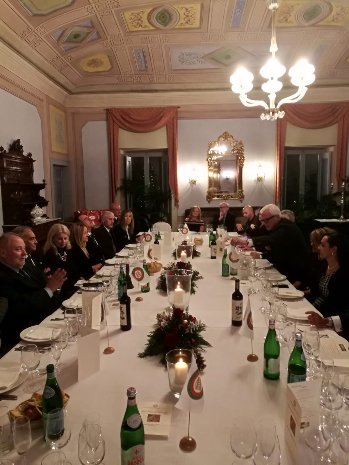 La riunione conviviale che la Delegazione di Ascoli Piceno ha organizzato per il tradizionale scambio degli auguri si è svolta presso il Salone delle Feste dell’Agriturismo di charme Villa Cicchi a Rosara di Ascoli Piceno (foto 1 e 2), addobbata magistralmente dalla titolare-chef signora Maria Elena Cicchi. Atmosfera magica per la location ma anche per come è stata sviluppata la serata dai Simposiarchi Andrea Gentili e Dina Bruni e dal Delegato Vittorio Ricci che ha invitato all’incontro natalizio il membro del Centro Studi F. Marenghi Leonardo Seghetti (in foto 3 Delegato Ricci e Accademico Seghetti). L'Accademico di Pescara Aternum ha più volte catturato l’attenzione dei commensali intrattenendoli su argomenti afferenti alle varie gustosissime portate, agli ingredienti adoperati, non trascurando i vari aspetti dell’eno-gastronomia del piceno, con interessanti collegamenti storici. Nel corso della serata, inoltre, è stato consegnato il Premio Nuvoletti alla titolare Maria Elena Cicchi, per “aver contribuito in modo significativo alla conoscenza e valorizzazione della buona tavola tradizionale regionale” (foto 4).