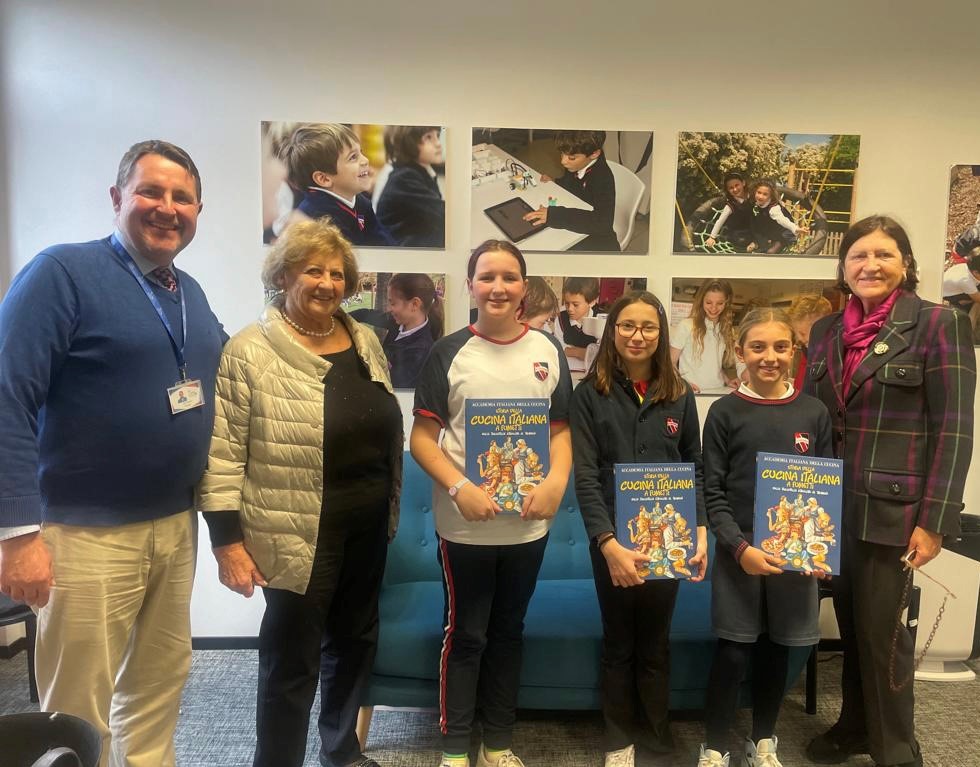 In rappresentanza della Delegazione Milano Duomo, la Delegata Maria Luisa Mandelli e la Vice Delegata Marisa Zipoli, hanno presentato l'edizione italiana del volume Storia della Cucina Italiana a fumetti al Preside della St. Louis School di via Caviglia a Milano, Mr. Jake Burnett. La scelta della scuola è stata determinata dalla presenza di un gran numero di allievi stranieri. È sembrato un buon obiettivo quello di informare non solo alunni e famiglie italiane, ma anche quelle straniere sul contesto gastronomico relativo al Paese in cui stanno vivendo anche alla luce della decisione di pubblicare il lavoro in diverse lingue oltre all’italiano. Mr. Burnett si è mostrato molto interessato all'iniziativa di cui ha compreso appieno la finalità culturale insieme alla necessità di promuovere tra i giovani i valori della cucina italiana e ha accettato con entusiasmo e riconoscenza la proposta di dotare le biblioteche delle singole classi, oltre che la biblioteca centrale della scuola, del volume edito dall'Accademia. Alla consegna dei volumi, avvenuta successivamente, erano presenti allievi di 11/12 anni che hanno apprezzato non solo il tema generale - come dagli Etruschi a oggi la cucina italiana sia divenuta l’eccellenza riconosciuta in tutto il mondo - ma i singoli argomenti proposti dal volume e la grafica accattivante e vicina alla loro sensibilità. Con grande entusiasmo si sono impegnati a diffonderne il contenuto ai compagni delle rispettive classi e anche in famiglia ai genitori.