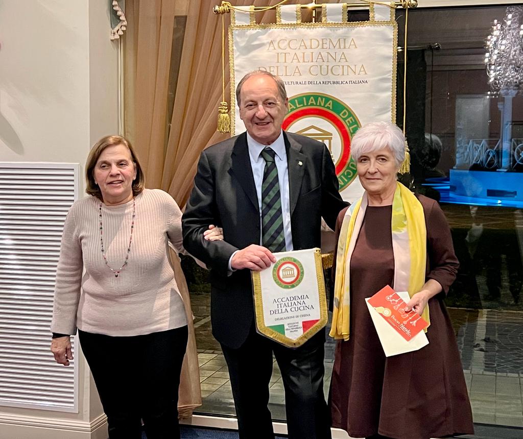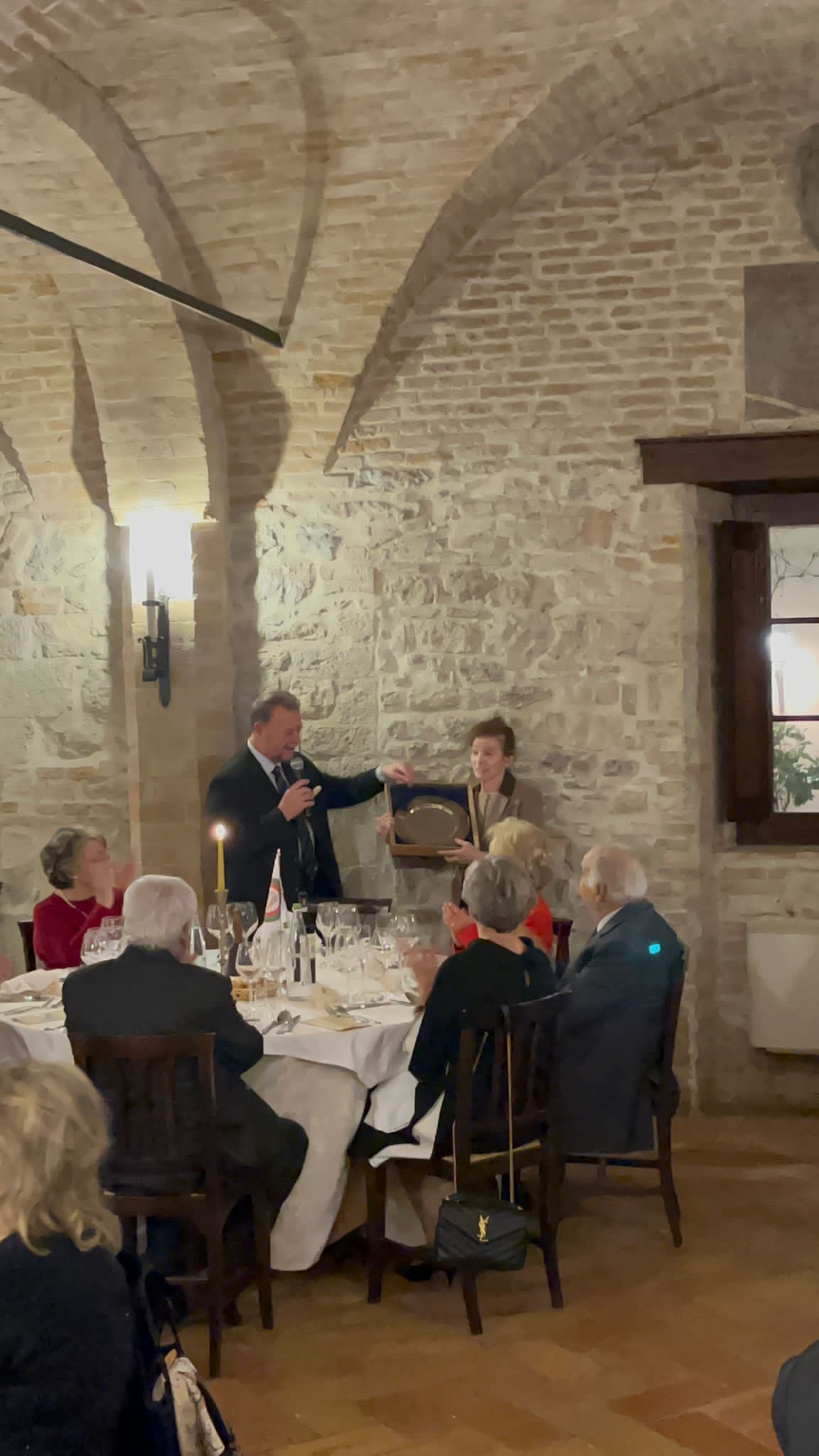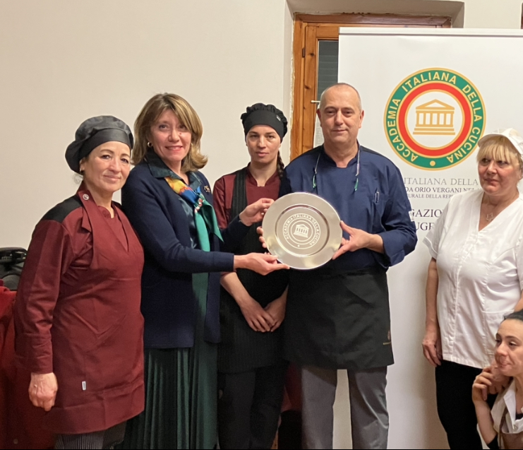 Consegnato nel corso della conviviale degli auguri il Piatto d’argento dell’Accademia alla signora Anna Bocci Battaglini, proprietaria e anima del ristorante “Il Convento” a Corciano, uno dei Borghi più belli d’Italia. Al timone del ristorante, l’ottantenne signora Anna, coadiuvata dalla figlia Patricia, segue ancora con passione la preparazione dei piatti tradizionali, realizzati con prodotti di stagione, che rappresentano l’eccellenza di questo storico locale meta di affezionati perugini e di numerosi turisti che visitano questi incantevoli luoghi. Il Piatto d‘argento, accolto da una signora Anna molto emozionata, è stato consegnato con la motivazione "Alla signora Anna Bocci, anima del “Convento” dal 1965, gelosa custode della tradizione gastronomica perugina".