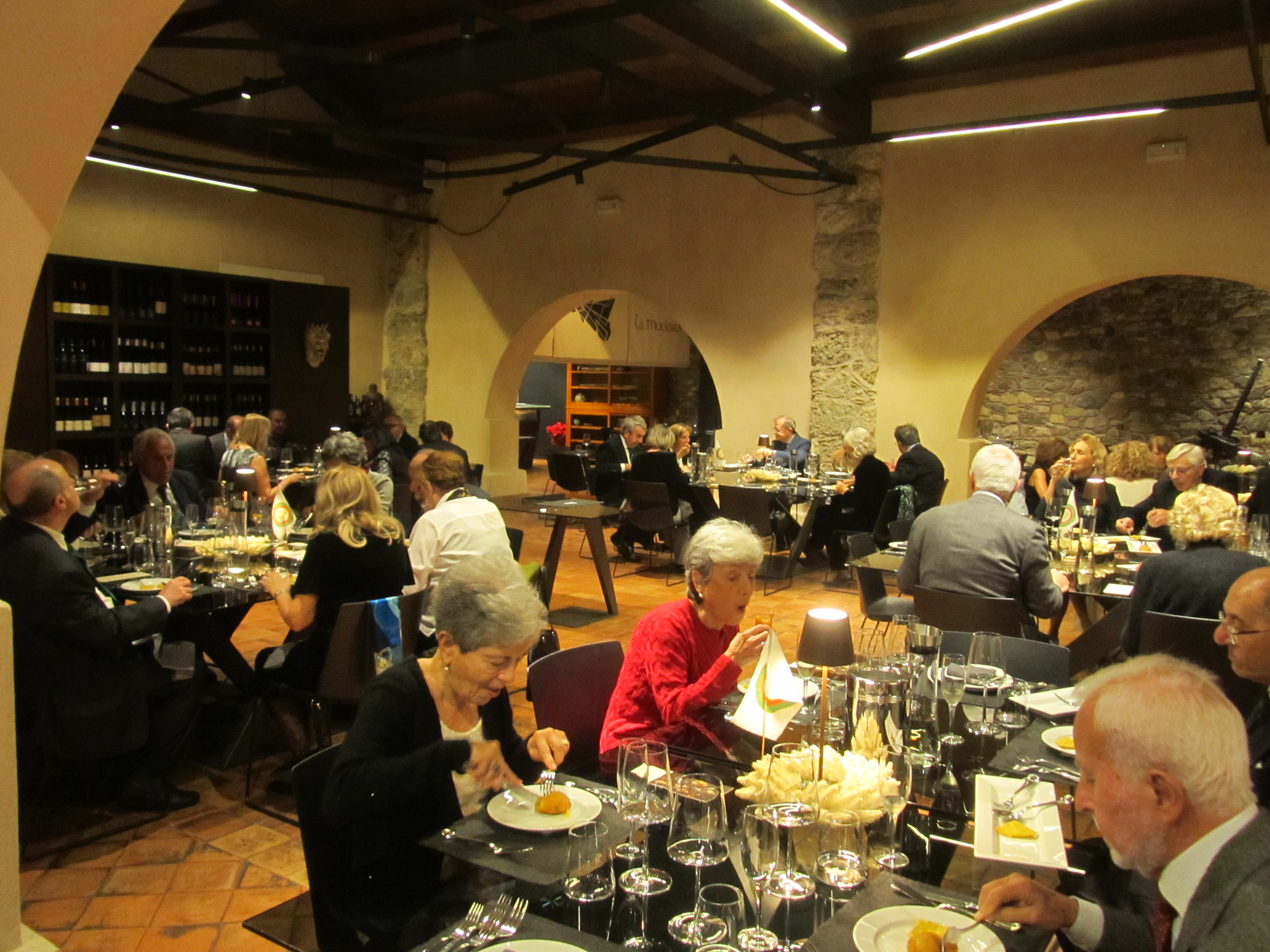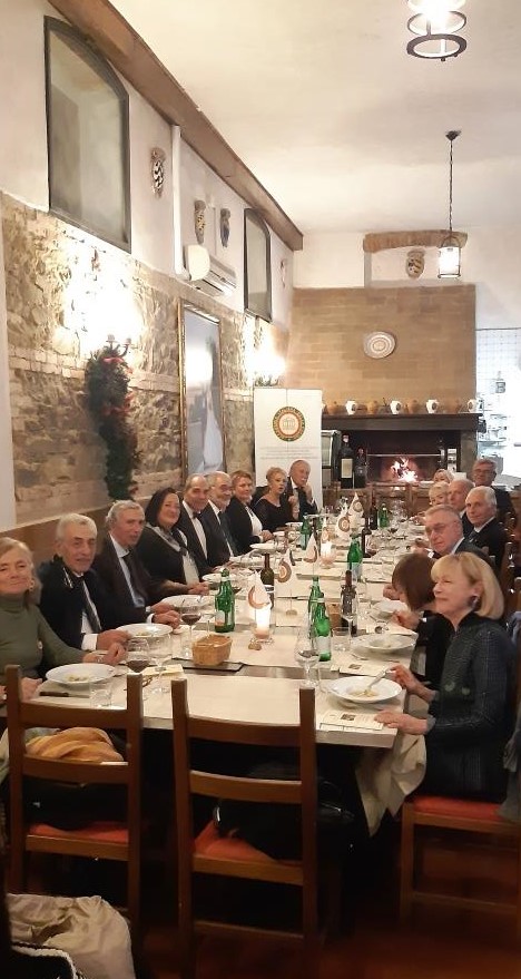 Diffusa soddisfazione dei numerosi Accademici e ospiti per la riunione conviviale degli auguri organizzata dagli Accademici Marco Bordin e Alessandro Brogi in questo locale nuovissimo e originale, frutto di sapiente ristrutturazione. Il “refettorio” è infatti parte dei locali della Fondazione Poma, che negli ampi ambienti contigui ospita sale di esposizione, biblioteca, laboratori per svariate attività. Alla Onlus (ed al Presidente Trinci) che ha creato e gestisce il complesso sono andati i rallegramenti e gli auguri della Delegazione per una proficua attività della benemerita iniziativa, inconsueta nel territorio. I Simposiarchi hanno combinato un menù con diversi piatti accompagnati da vini ben scelti e graditi. Così, le varie portate, proposte con garbo ed attenzione dal giovane personale di sala, han fatto apprezzare le capacità dei cuochi, giovani anch’essi; meritando, entrambe le brigate, l’elogio dei commensali. A conclusione della bella e riuscita serata, con il ringraziamento agli organizzatori ed il saluto del Delegato, la consegna agli Accademici del tradizionale dono beneaugurante e i rinnovati, calorosi auguri reciproci.