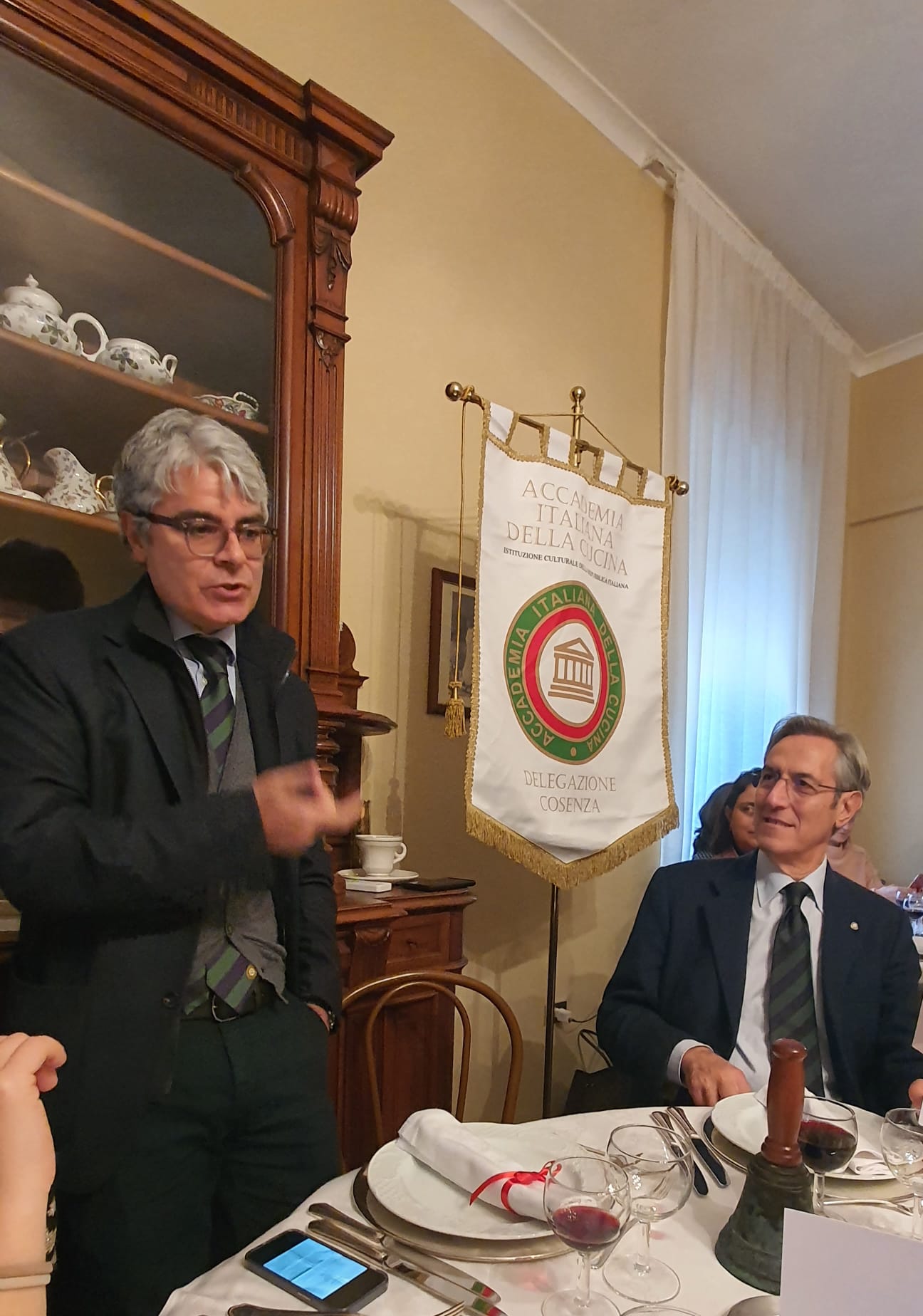 "Ci sono momenti che aiutano ad arricchire il percorso di ognuno, perché offrono la certezza che l’amicizia vera esiste!“ È così che uno degli Accademici ha inteso racchiudere lo spirito della Conviviale per lo scambio degli auguri organizzata presso il ristorante Barbieri, apponendo la propria firma sul giornale di bordo degli eventi della Delegazione di Cosenza. Con un menu messo a punto con lo chef Enzo Barbieri, seguendo il filo della tradizione delle feste secondo le usanze delle cosiddette “aree interne” del territorio cosentino (foto 1 e foto 2), il Simposiarca Ugo Lombardi (foto 3) ha ripercorso ed approfondito le radici culturali ed antropologiche dei singoli piatti fino alle evoluzioni dei giorni correnti. Dopo una stimolante testimonianza dell’Accademico Ottavio Cavalcanti, ha concluso il convivio il messaggio di auguri rivolto agli Accademici dal signor Prefetto della provincia di Cosenza Vittoria Ciaramella (foto 4).
