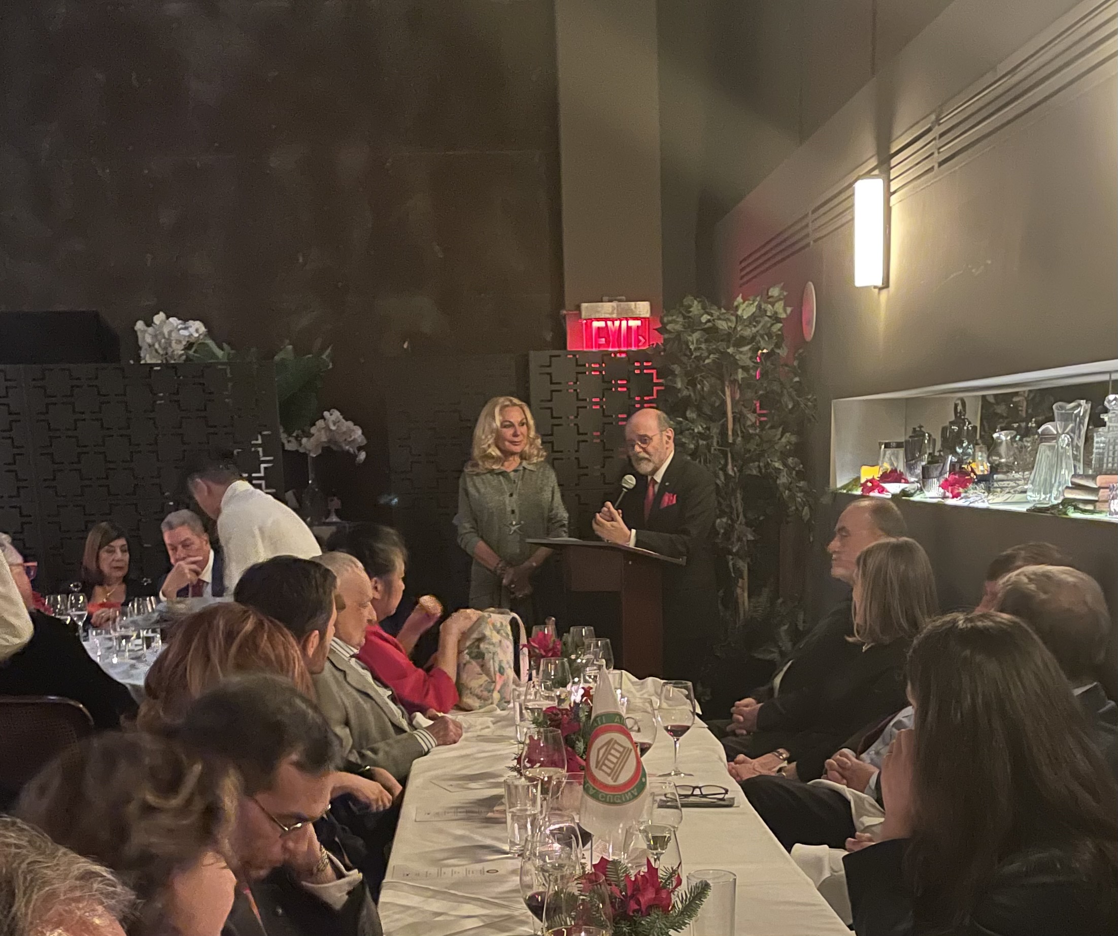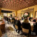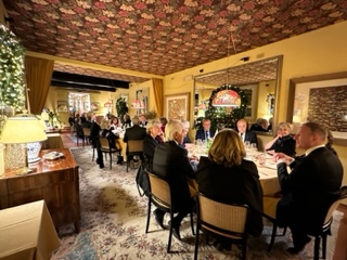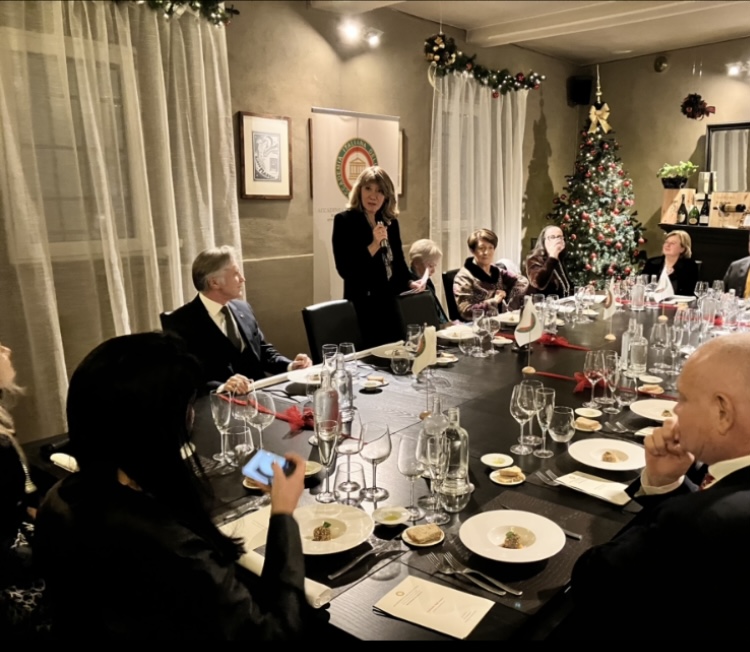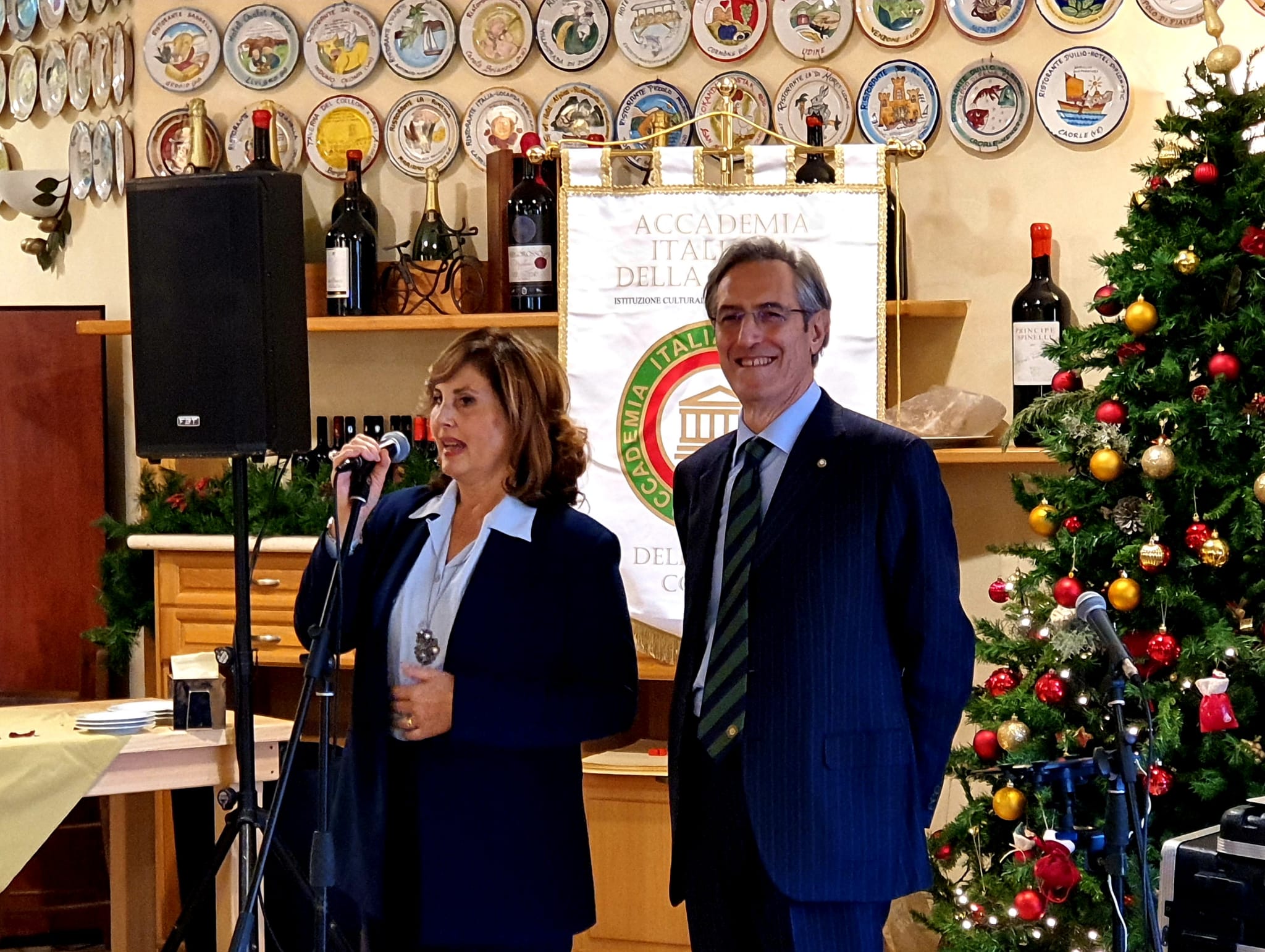 Le due Delegazioni di New York e New York Soho, guidate rispettivamente da Roberta Marini de Plano e Berardo Paradiso, si sono riunite presso il ristorante Il Gattopardo per celebrare la stagione e scambiarsi gli auguri per le imminenti festività natalizie. Circa ottanta i partecipanti, tra Accademici e ospiti, con la gradita presenza di Irene Asquini e Riccardo Cursi, Consoli Aggiunti a New York, di Fabio Finotti, Direttore dell’Istituto Italiano di Cultura a New York e di Antonino Laspina, Direttore ICE di NY. Lo chef Vito Gnazzo ha presentato un menu della tradizione italiana natalizia con un primo di baccalà mantecato, seguito dal sartù di riso, branzino al forno con caponata e, per finire, panettone con crema di mascarpone. Durante la cena i Delegati hanno relazionato sulle tradizioni culinarie delle feste in Italia che molti tra gli ospiti hanno confermato di continuare a mantenere anche all’estero. Sul finire della serata, lo chef ha dettagliato i piatti preparati e ha ricevuto il piatto commemorativo dell’Accademia per il 2022. La serata si è conclusa in un clima caloroso e festoso durante lo scambio degli auguri.