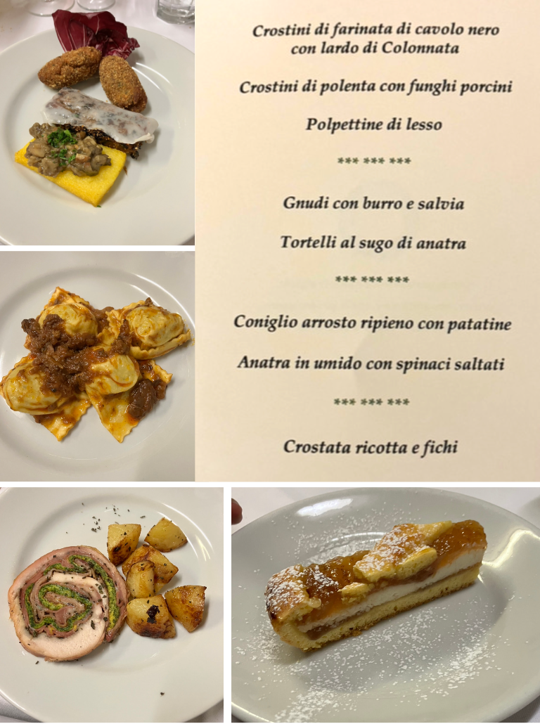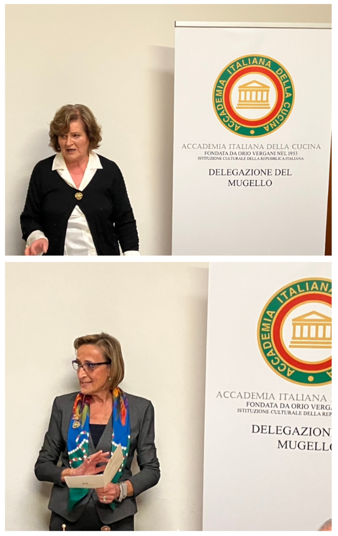 Per la prima riunione conviviale dell’anno gli Accademici si sono ritrovati al ristorante Montelleri a Vicchio di Mugello (FI), dove il cuoco Donato Petri è da tempo conosciuto e apprezzato per la preparazione di piatti semplici, con ingredienti di prima qualità e nel rispetto della tradizione. La magistrale organizzazione della serata si deve alle Accademiche Isabella Lapucci e Lorenzina Baldi che hanno illustrato il percorso di Donato, la storia del locale e le ricette dei piatti proposti, tra cui la farinata di cavolo nero, le polpettine di lesso, l’immancabile tortello di patate e le carni dell’aia utilizzate per la preparazione dei sughi e dei secondi. Il menu scelto, espressione di una cucina che rispecchia il gusto tutto mugellano per le cose semplici e le preparazioni non troppo elaborate, ha riscosso un elevato apprezzamento da parte di tutti gli Accademici. A conclusione della serata molto partecipata è stato consegnato al cuoco il piatto dell’Accademia. Foto 1. L’intervento delle Accademiche Isabella Lapucci (in alto) e Lorenzina Baldi (in basso). Foto 3. I Simposiarchi con la Delegata Monica Sforzini. Foto 4. La consegna del piatto dell’Accademia a Donato Petri. Il menu e alcuni dei piatti serviti.