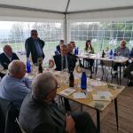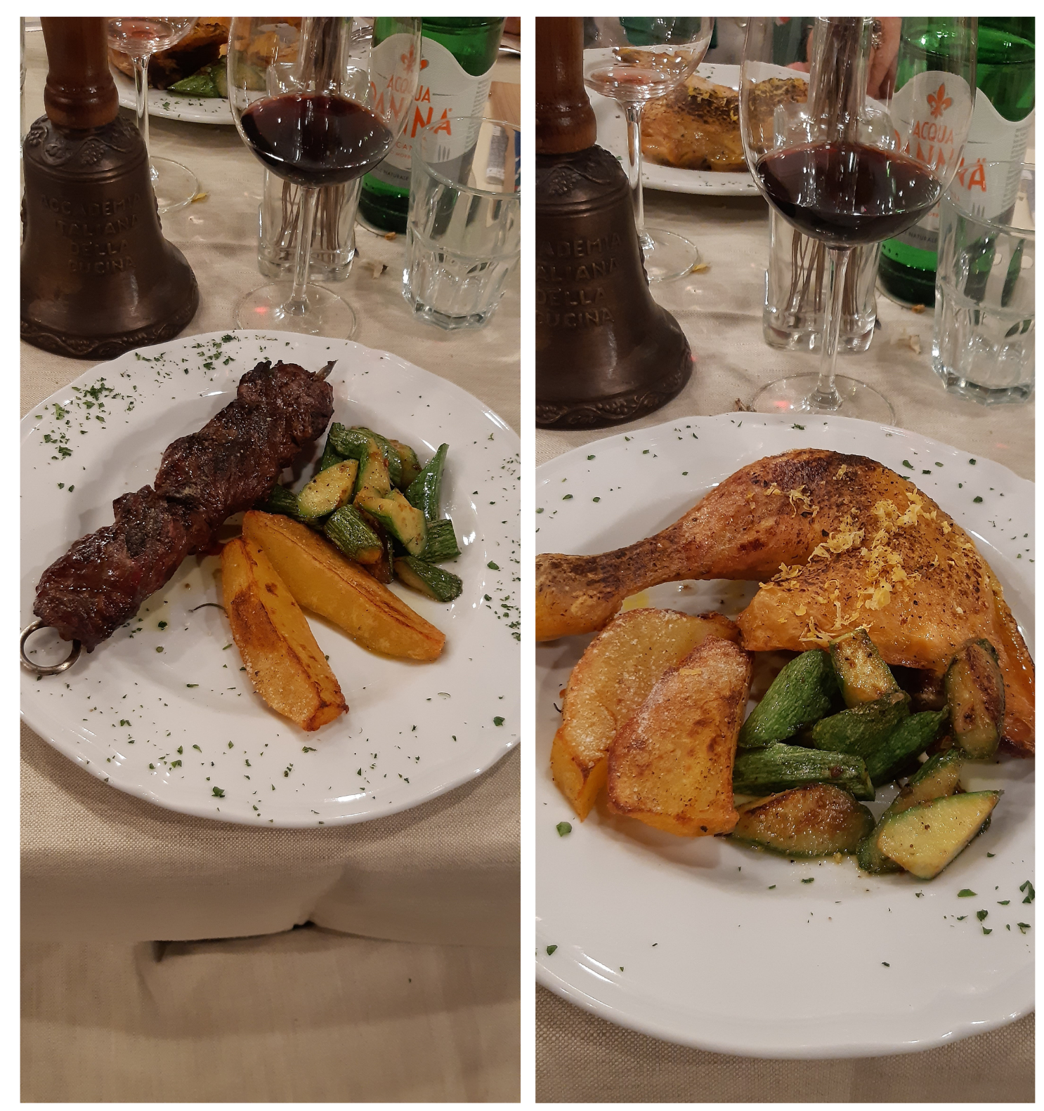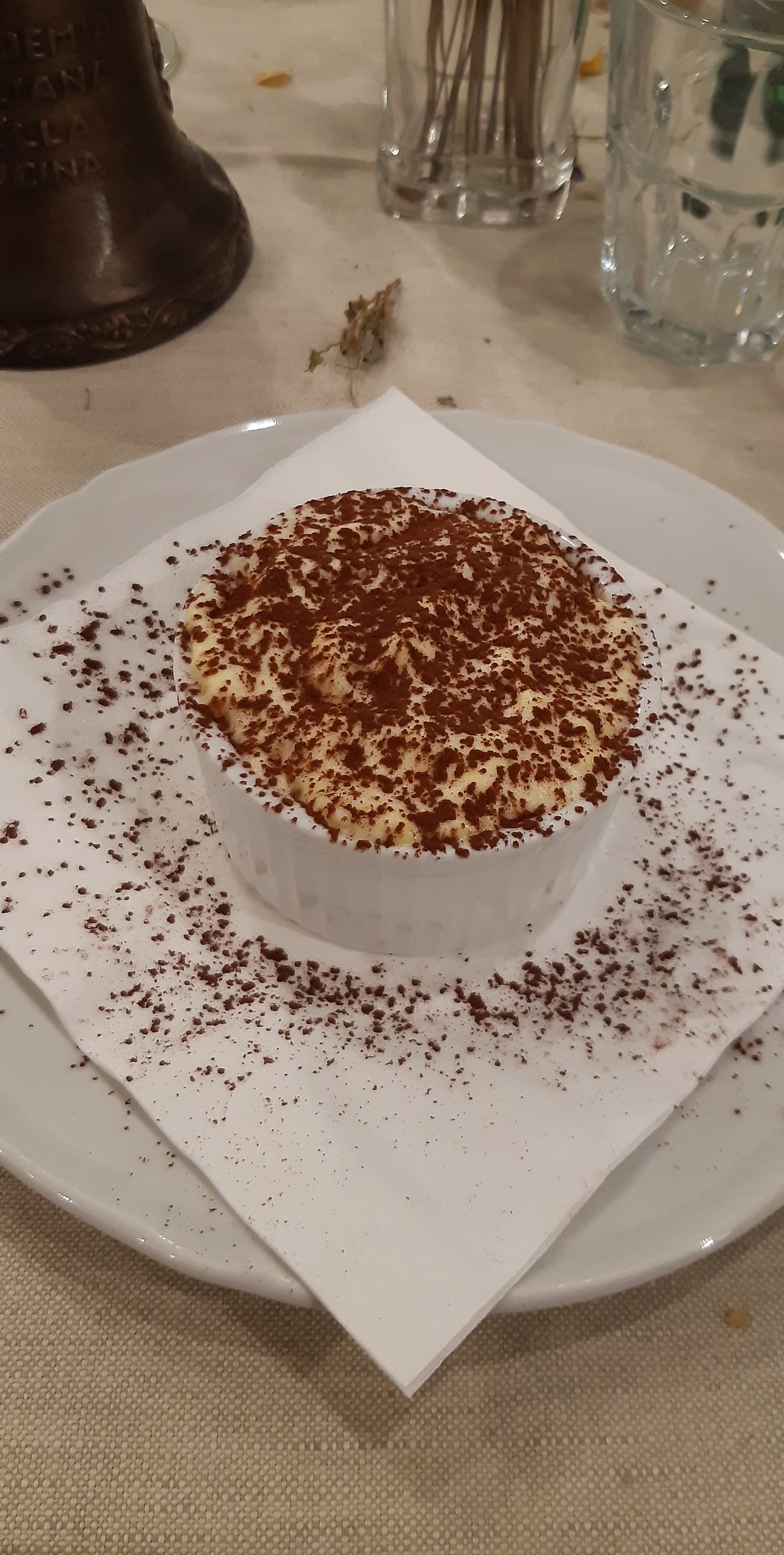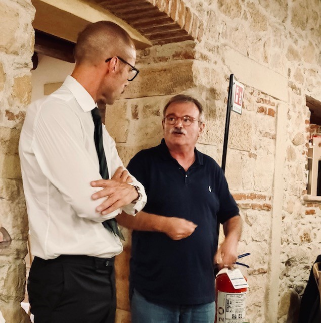 La Delegazione del Valdarno Fiorentino si è riunita presso il ristorante Il Vescovino a Panzano in Chianti. Il clima mite ha favorito la conviviale all'aperto, su una terrazza panoramica e in un contesto incantevole. I Simposiarchi Assia Olivieri e Paola Mainardi, con lo chef Sergio Roncaratti, hanno preparato un menu veramente gustoso, a partire da una delicata tartare di melanzane, condita con miele, lamponi, finocchietto e menta, proseguendo con deliziosi pici all'aglione, pollo del Valdarno o bavetta di manzo allo spiedo e finendo con un ottimo tiramisù (foto 2-3-4). Durante la serata il Delegato Sandro Fusari ha illustrato agli Accademici le principali novità in merito alla recente approvazione del nuovo Statuto e i Simposiarchi, coadiuvati dai proprietari e gestori del ristorante, Renata e Sergio Roncaratti, hanno raccontato, con dovizia di particolari e contagioso entusiasmo, i prodotti utilizzati, le ricette seguite, i piatti serviti e la storia del locale. I prodotti utilizzati sono tutti del territorio, l'abbinamento dei vini equilibrato, la cortesia e la disponibilità dei gestori a raccontare la loro esperienza è stata molto apprezzata. Al termine della serata sono stati consegnati a Renata e Sergio Roncaratti alcuni volumi dell'Accademia (foto 1).