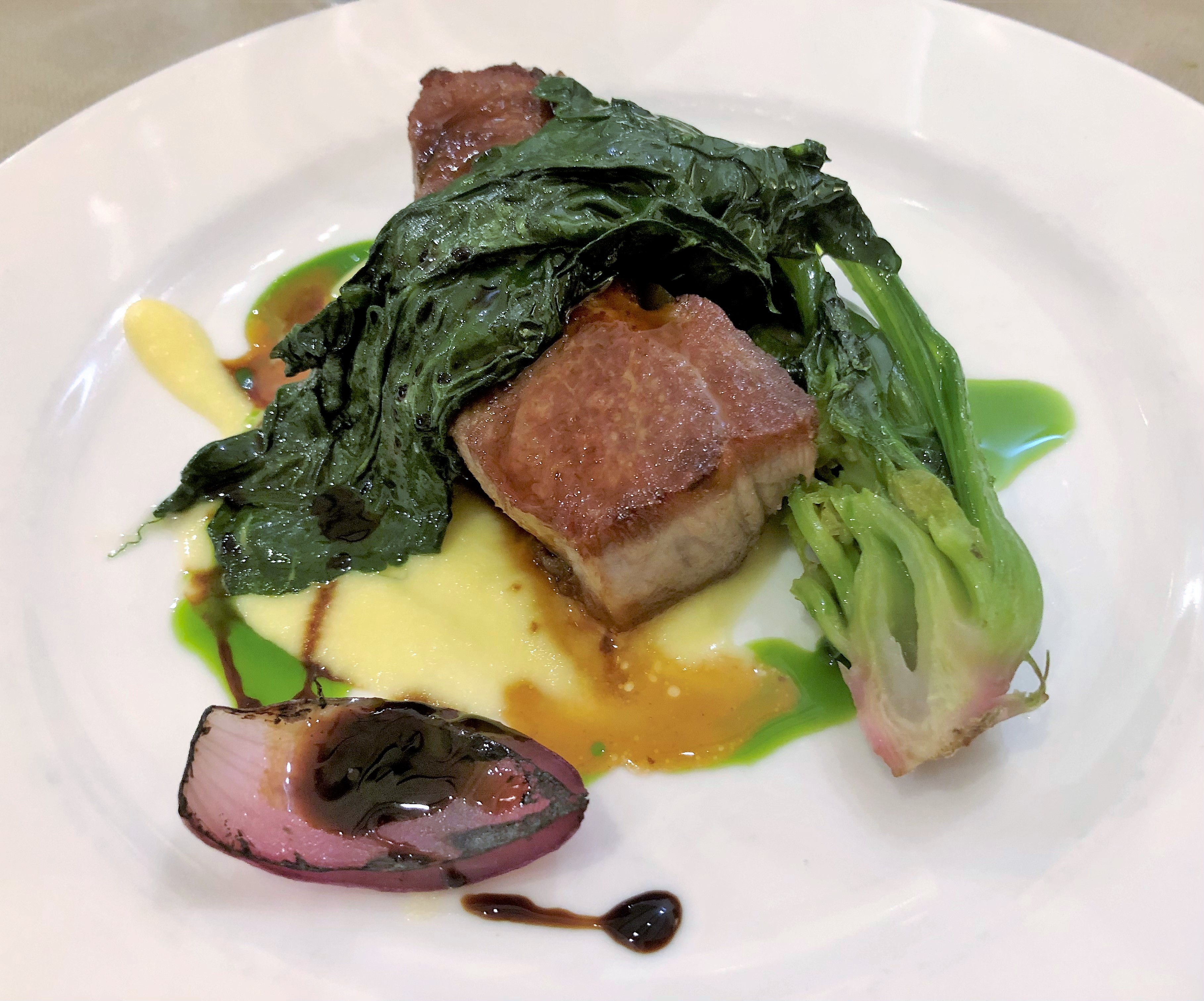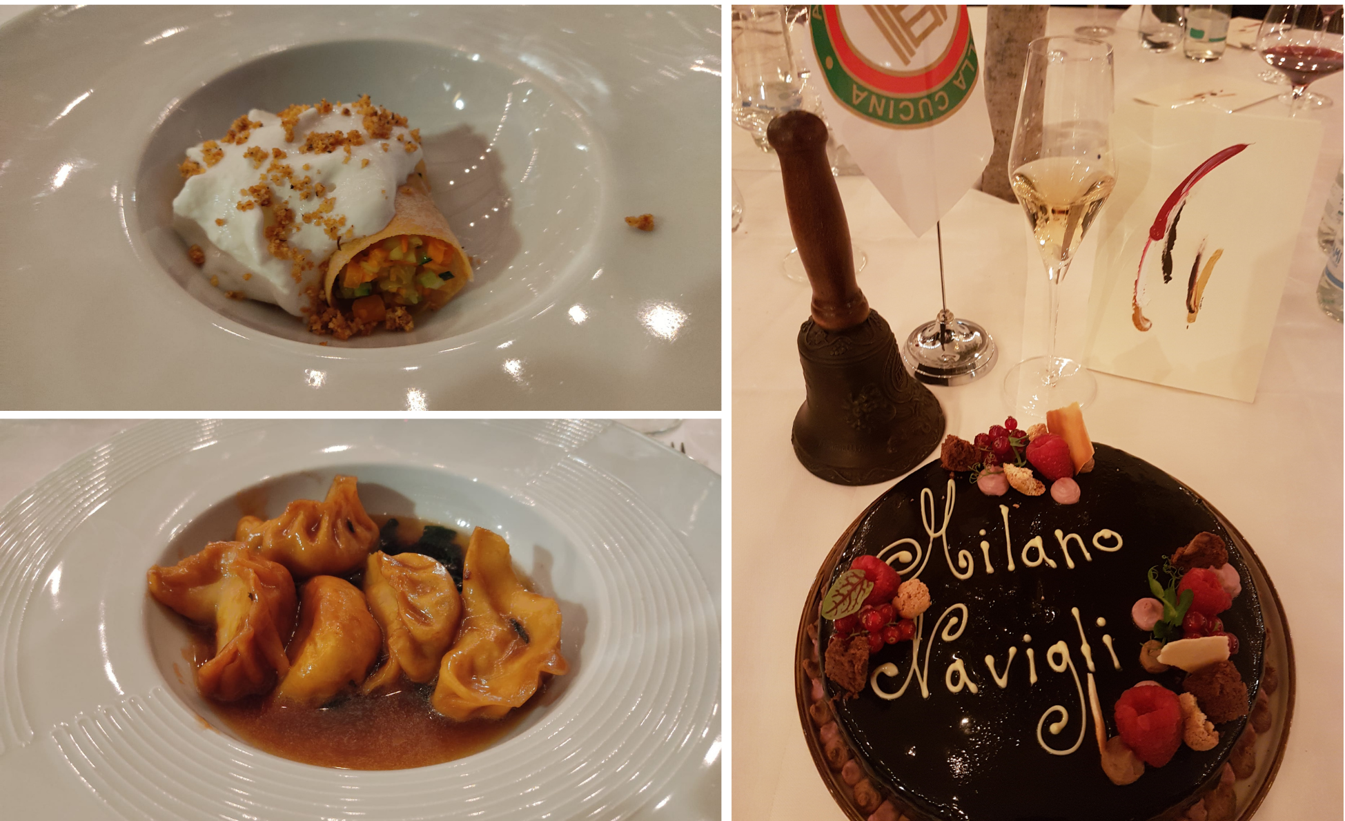 “La tradizione e il territorio. I neo Accademici si raccontano” è stato il tema della conviviale che si è svolta fra gli ulivi di una terrazza meneghina (foto 1) per festeggiare tre nuovi ingressi nella Delegazione Milano Navigli: Alessandro Furlan, Cesare Invitti di Conca, Francesco Zappone (tutti in foto 2 con la Delegata Cristina Ciusa). E raccontare la contaminazione tra culture del territorio ha portato gli Accademici a scoprire la cucina di El Ganassin, ristorante nella zona residenziale Washington Solari in una Milano quasi nascosta. Nato un anno fa dalla sinergia di due anime, una milanese con Giorgio Gibelli e una cinese con Feng Ye, da vent’anni nel settore della ristorazione urbana. In cucina Bruno Manganaro (in foto 3 con la Delegata), che attraverso le ricette di tradizione lombarda esplora nuove forme di espressione culinaria con preparazioni e ingredienti orientali. Nell’incontro dei sapori la scelta enologica, descritta per ogni portata, li ha condotto sulle colline milanesi, a San Colombano al Lambro nella cantina Nettare dei Santi. In tavola la Valtellina con una spuma di Casera in un cannolo di pasta wanton ripieno di brunoise di verdure a contrasto con lo yozucosho. E la bergamasca, con una versione più delicata di Casoncello servito su una zuppa di dashi tiepida con alga wakame, particolarmente apprezzati dagli Accademici. Carrè di agnello cotto a bassa temperatura, affiancato da un morbido di zucca, terrina di patate sfogliate e salsa alla pechinese servito con Pinot nero. Torta paesana, dolce tipico brianzolo, rivisitata e scomposta in una forma di bavarese con evidenza degli ingredienti madre, magistralmente decorata (foto 4). Cotture impeccabili e attenzione al dettaglio della forma estetica.