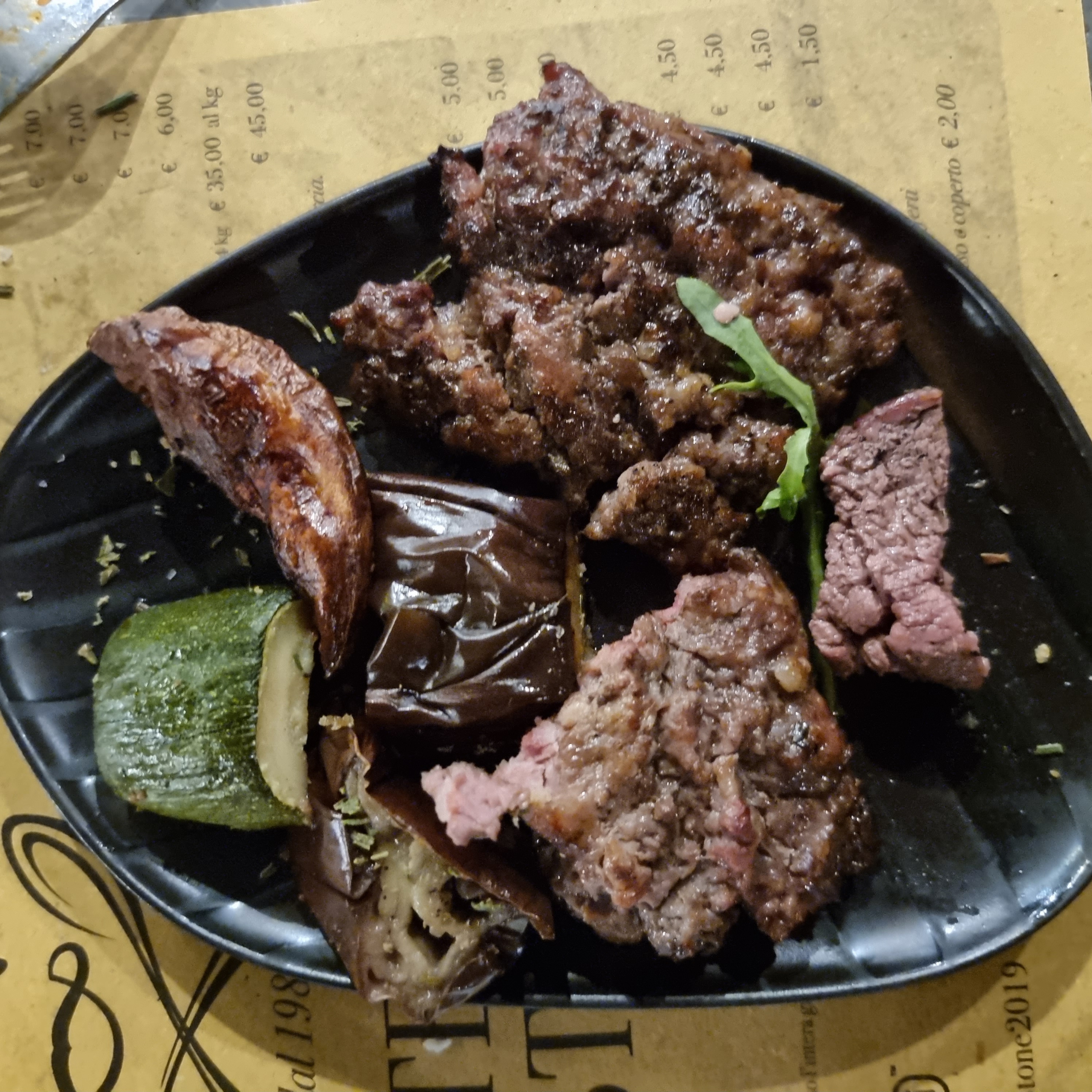 L'arrivo del caldo estivo ha favorito la prima conviviale all'aperto negli ampi spazi verdi dell'Osteria Gastone, ai confini tra Imola e Toscanella. Anche l'affluenza degli Accademici ne ha beneficiato favorendo la conversazione e la convivialità. La proposta del menu, pensata dal Simposiarca Tiziano Pirazzoli affiancato da Franco Tampieri, ha soddisfatto i presenti sia per la rinoscibilità dei piatti sia per l'anima romagnola che li contraddistingueva, a partire dal taglierino di salumi con squacquerone e polenta fritta e dal fegato di maiale in rete. Una serata quindi pienamente riuscita grazie anche all'ottima accoglienza offerta dal giovane gestore ventottenne Giacomo, nipote del fondatore Gastone. Foto 1. Panoramica delle tavolate degli Accademici. Foto 2. La consegna del guidoncino. Da sinistra il Delegato Antonio Gaddoni, l'oste Giacomo Piatesi, il Simposiarca Tiziano Pirazzoli con Franco Tampieri. Foto 3. Il piatto della carne con il fegato in rete e il filetto di bovino alla brace.