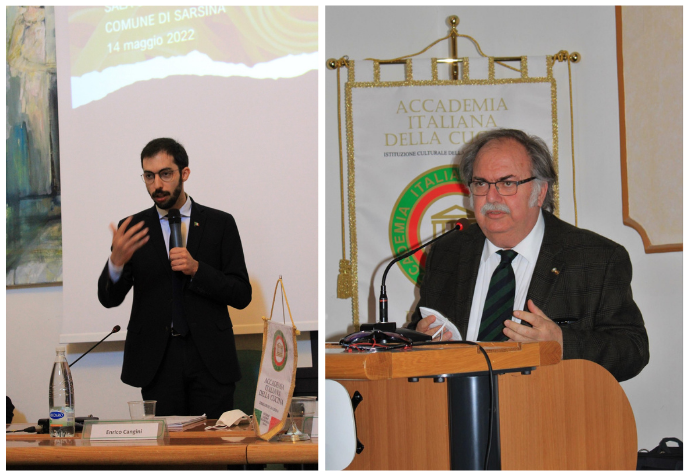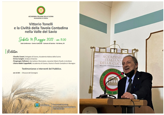 La Delegazione, in collaborazione con il Comune di Sarsina, ha organizzato un incontro dedicato alla figura di Vittorio Tonelli, appassionato ricercatore e studioso della storia e cultura di Romagna, e alla Civiltà della tavola contadina, tema celebrato quest’anno dalla nostra Accademia. Alle brillanti presentazioni dei relatori sono seguite numerose testimonianze e interventi del pubblico presente, tra cui una folta rappresentanza degli studenti delle scuole secondarie, che hanno messo in evidenza l’intenso e intimo rapporto che Vittorio Tonelli ha avuto, e continua ad avere, con la comunità sarsinate. “Un fondamentale patrimonio di conoscenza degli usi e costumi della cucina contadina da preservare e trasmettere ai più giovani”, come ha sottolineato il Delegato nelle considerazioni conclusive. L’evento è proseguito presso il ristorante “Fagiolo d’oro” di Turrito di Sarsina che, per la speciale occasione, ha proposto un menu ispirato alla tavola contadina del territorio, degna conclusione di un evento molto partecipato e apprezzato. Foto 1. Locandina dell’evento e il Delegato Claudio Cavani. Foto 2. Il Sindaco Enrico Cangini e il Coordinatore territoriale Romagna Fabio Giavolucci. Foto 3. I relatori Piergiorgio Pellicioni e Liliana Babbi Cappelletti. Foto 4. La sala conferenze con i partecipanti.