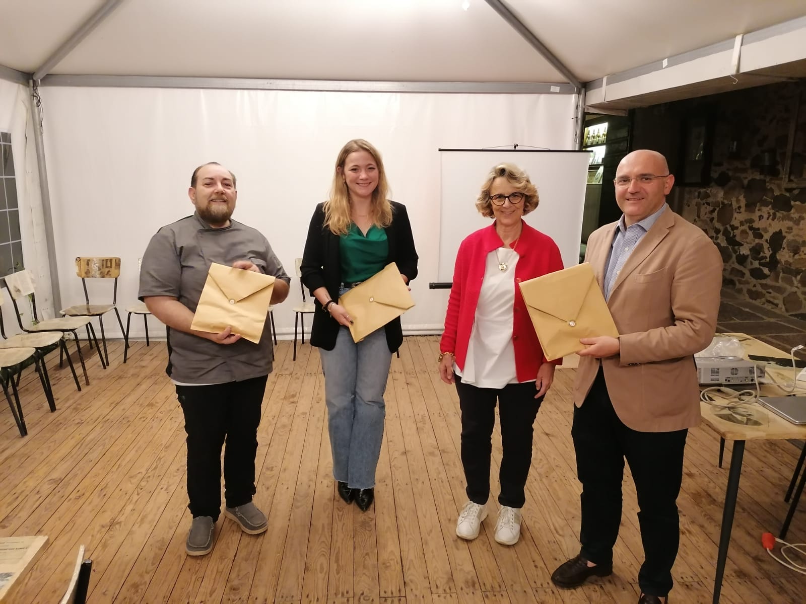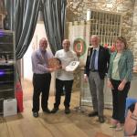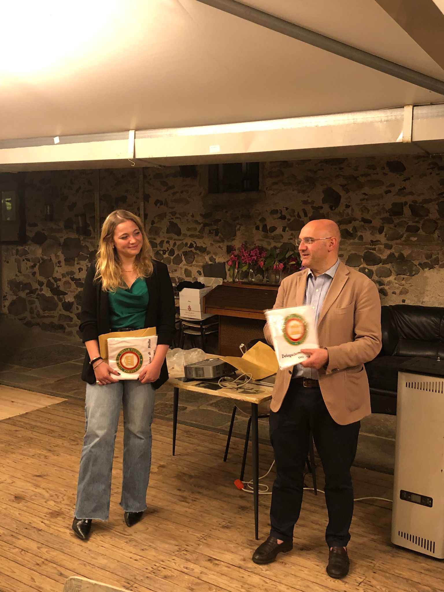 Le Delegazioni di Verona e di Rovereto e del Garda Trentino si sono riunite nella Valpolicella Classica. La preziosa amicizia che le unisce e il fortissimo interesse per i luoghi e i prodotti del territorio veronese, le ha portate a visitare due realtà di grande interesse. Ospiti nel tardo pomeriggio della Cantina Rubinelli Vajol, nel cuore della Valpolicella Classica, a pochi passi dai tufi millenari della Pieve romanica di San Floriano, attraversando i vigneti, il fruttaio e la cantina. Alberto, con innata passione e competenza, li ha condotti in uno straordinario percorso contraddistinto da colori, profumi ed impareggiabili sapori. Elementi che qualificano l’unicità delle sue vigne, delle sue uve e del suo vino. Amarone, Ripasso, Valpolicella Classico superiore, Classico ed il Recioto. Quest’ultimo, abbinato splendidamente, al lardo di Colonnata. La serata è proseguita con l’accoglienza della famiglia Scandogliero del ristorante “Le 4 Ciacole”. Bottegai da ben tre generazioni che si sono tramandate, con amore e passione, il culto per l’arte culinaria. Cucina semplice ma curata e straordinari formaggi selezionati ed affinati da Tiziano Scandogliero. A conferma dell’ottima riuscita del convivio, i due Delegati Fabrizio Farinati e Germano Berteotti hanno donato a Marco Scandogliero, cuoco e sommelier professionista AIS, il piatto in silver dell’Accademia. Un’altra importante tappa del percorso accademico condiviso dalle due Delegazioni.