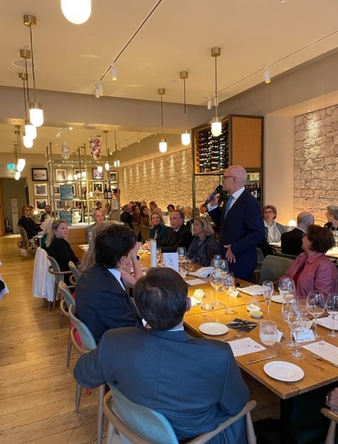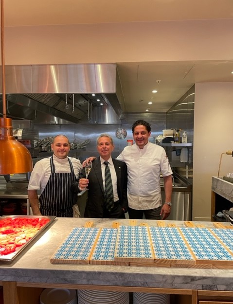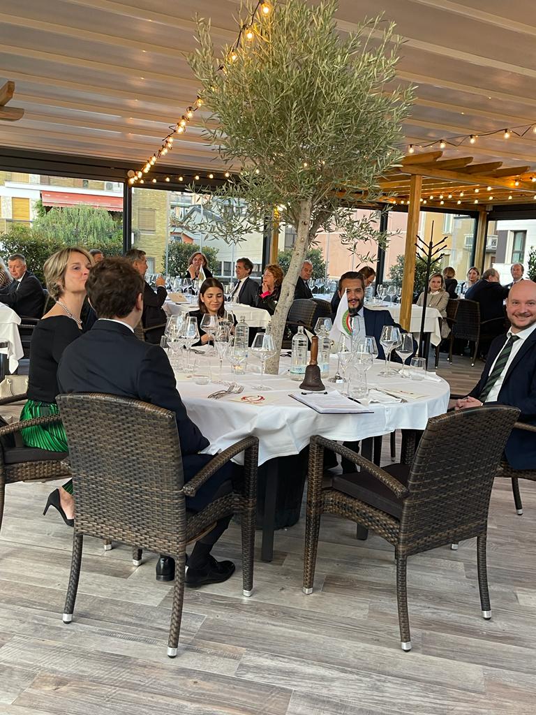 Il tradizionale e attesissimo Summer Party della Delegazione di Londra si è tenuto presso il ristorante Fiume, ospiti del Celebrity Chef Patron Francesco Mazzei. La serata si è svolta nella meravigliosa scenografia data dal Tamigi all’ombra dell’iconica centrale di Battersea ed è cominciata con un lungo aperitivo in terrazza con cicchetti vari e saporiti e assaggi di pinse romane. Era presente all’evento Chiara Soldati (proprietaria e CEO dell’azienda piemontese vinicola La Scolca), insignita pochi giorni fa della onorificenza di Cavaliere del Lavoro dal Presidente Mattarella. La serata ha visto la partecipazione delle autorità istituzionali più rappresentative, l’Ambasciatore S.E. Raffaele Trombetta, il Console Generale dott. Marco Villani; erano inoltre presenti il Presidente della Camera di Commercio cav. avv. Alessandro Belluzzo e il Direttore dell’Ufficio ICE/ITA dott. Giovanni Sacchi. L’Ambasciatore, nel suo saluto iniziale, ha ricordato l’impegno dell’Accademia nella promozione dei valori della cucina italiana nel mondo, sottolineando la collaborazione con le Istituzioni che formano il “sistema Italia”; il Delegato Fazzari ha illustrato in dettaglio le attività accademiche nel mondo e la collaborazione con il MAECI. La partecipazione è stata di oltre cento persone ed è stata facilitata dal tempo eccezionalmente mite. Tanto ha reso ancora più piacevole e di successo il lungo aperitivo, organizzato dal Delegato per salutare personalmente autorità e ospiti. Il Delegato ha ringraziato la brigata di cucina e l’impeccabile servizio, invitando i presenti ad applaudire i Simposiarchi Sidney Ross e Rocco Franco, ricordando in particolare il grande lavoro di Sidney Ross quale Vice Delegata.