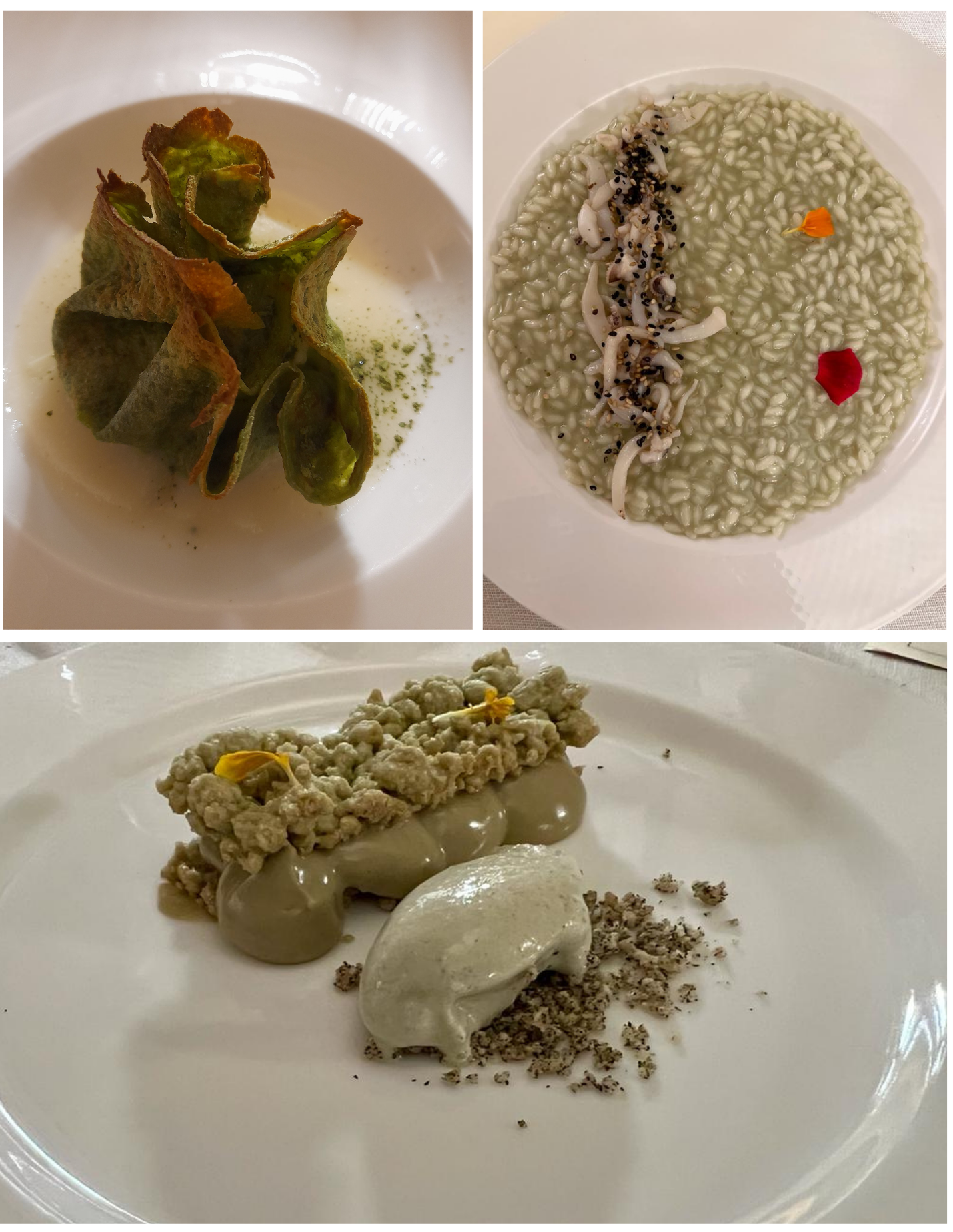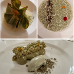 Il gestore del ristorante Il Faggio di Pollone, Gigi Zanone con il suo chef Rafik El Frougi hanno accolto con entusiasmo la proposta di eseguire una cena a base di tè seguendo i consigli e le idee i Francesca Guabello, Tea Sommelier di Biella. La cena è stata tutta incentrata su questa bevanda ed i suoi possibili abbinamenti con il cibo. I piatti creati hanno rispettato la stagionalità e il territorio esaltando l'aroma dei tè utilizzati. Durante la serata è stato festeggiato l'Accademico Gian Carlo Fileppo per i 35 anni di appartenenza all'Accademia. Foto 1. Francesca Guabello mentre illustra i tè. Foto 2. La Delegata Marialuisa Bertotto con Accademico Gian Carlo Fileppo. Foto 3. La Delegata, Francesca Guabello, lo chef Rafik El Frougi, il titolare del ristorante Gigi Zanone. Foto 4. Ovetto morbido con tè Matcha e asparagi bianchi; riso Carnaroli di Baraggia biellese con tè Gyokuro, seppie e sesamo tostato; cremoso e freddo di tè al gelsomino.