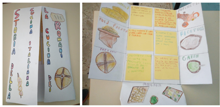 La gioia negli occhi dei bambini, emozionati ed incuriositi dal libro a fumetti sulla Storia della Cucina Italiana che hanno ricevuto in dono dalla Delegazione di Palermo. I bambini sono gli alunni delle classi quinte della scuola Umberto Giordano di Palermo che, sapientemente guidati dalle loro insegnanti, hanno iniziato questo viaggio attraverso le civiltà del passato: Etruschi, Arabi, Romani, i loro cibi, le usanze, i costumi, il linguaggio, origini e valenza multietnica della cucina italiana; i piatti tipici palermitani, i cibi provenienti dalla Americhe come la patata e la fava di cacao. Attraverso alcuni lapbook da loro progettati e realizzati (foto 1-2), hanno visivamente sintetizzato con immagini e testi, ciò che hanno appreso. Una emozionante dedica di gratitudine per questa opportunità è stata rivolta ai responsabili dell’Accademia “perché un libro a fumetti non solo fa divertire, ma apre anche un mondo di conoscenze” (foto 3). I ringraziamenti della Delegazione ai bambini per l’entusiasmo con cui hanno lavorato e alle loro insegnanti, in particolare alla maestra Maria Rosa Marino che ha guidato i bambini con passione e alla Preside Vincenza Piscitello che ha creduto, fin da subito, in questo progetto (in foto 4 con la Delegata di Palermo Daniela Nifosì).