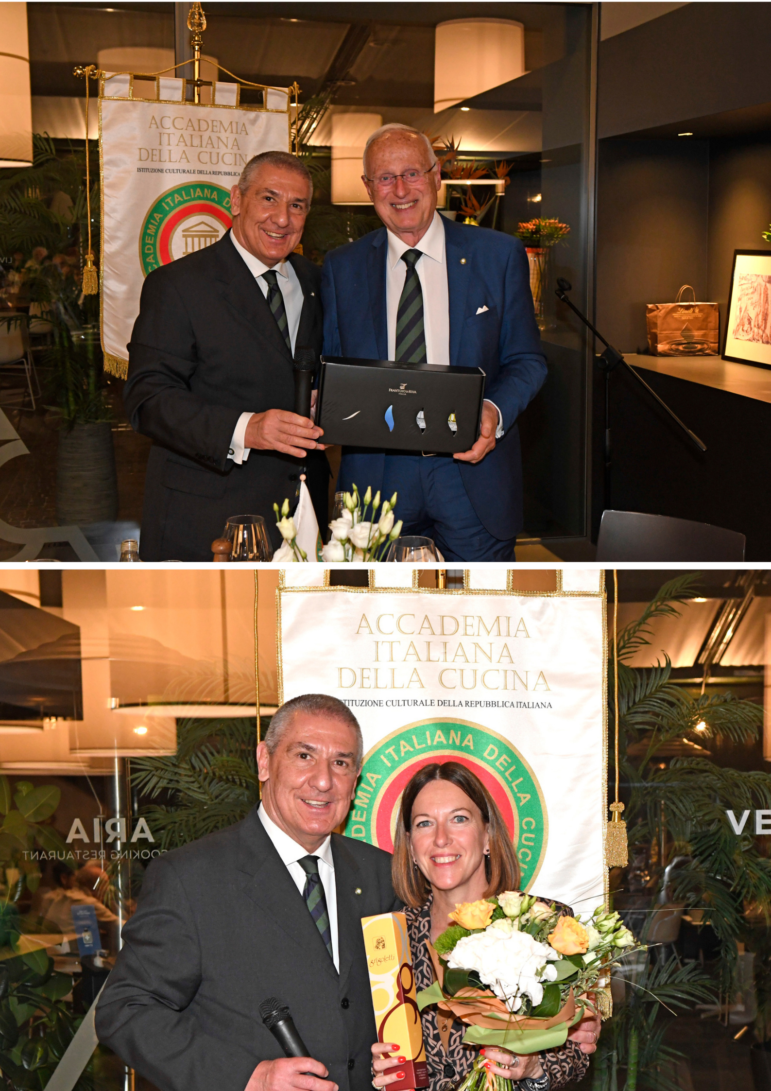 Nuovo appuntamento della Delegazione di Utrecht nel ristorante "Da Claudio" a Huissen sotto la guida del Simposiarca Luca Consoli anche in occasione della ricorrenza della scomparsa, poco più di un anno fa, del fondatore Luca Feboli. La figlia Andrea in sala e lo chef Raphael Renjaan (genero del compianto Feboli) offrono ai commensali un benvenuto caloroso e si impegnano al massimo per proporre un servizio e un livello di cucina al passo del loro padre e maestro. Per gli Accademici, In apertura, uno squisito tramezzino e un ottimo carpaccio di polipo seguiti da saporiti ravioli agli scampi cotti alla perfezione così come anche la migliore portata della serata, il Falsumagru, veramente eccellente. A chiudere, un tris di dolci fatti in casa. Un punto di merito ai vini, proposti in un riuscito abbinamento. La serata è stata allietata dalla investitura del nuovo Accademico Gert-Jan van Teeffelen (in foto 1 con il Delegato Aristide Spada) e l’annuncio della nomina ad Accademica onoraria per la signora Enrica van der Avort- Panigo (foto 2).