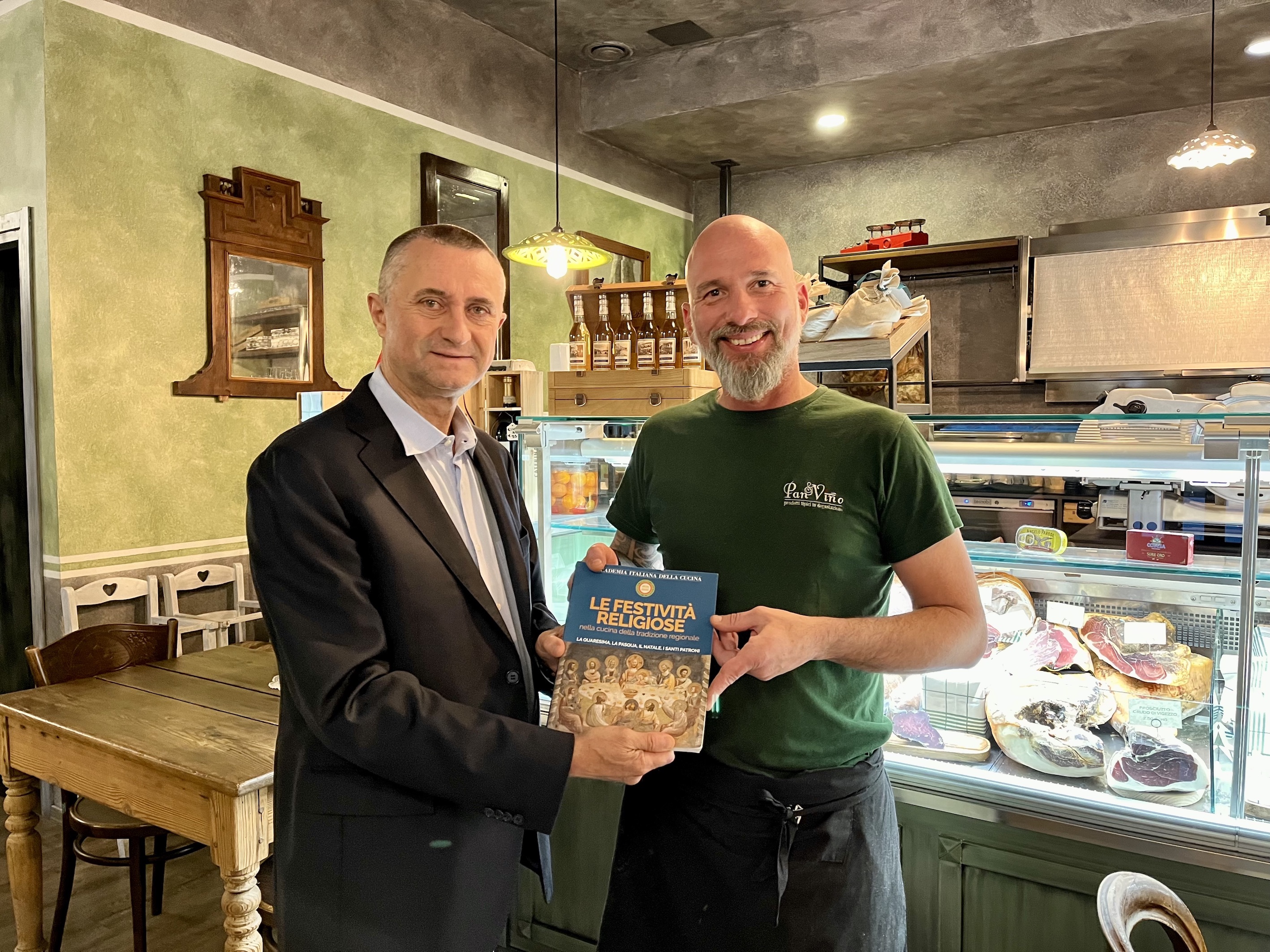La Delegazione si è ritrovata al ristorante "La Fornace de’ Medici" a Vaglia (FI), un’antica fornace fatta costruire da Francesco I dei Medici, situata in un'incantevole valle proprio alle porte del Mugello. La serata si è svolta alla presenza del Segretario Generale Roberto Ariani (in foto 1 durante il suo intervento) che ha appuntato il distintivo ai due nuovi Accademici Simone Bettini (foto 2 in alto) e Luca Capecchi (foto 2 in basso), calorosamente accolti dai numerosi Accademici presenti. Il menu, proposto dal patron Guido Ciatti insieme al figlio Lorenzo e allo chef Vittorio Celentano, è stato molto apprezzato. I piatti, accuratamente preparati con i prodotti biologici provenienti dall’agriturismo all'interno del quale si trova il ristorante - le verdure dell’orto, i grani antichi per il pane e la pasta fatti in casa, i formaggi e le carni bianche - hanno suggerito il tema della riunione conviviale “Incontro al tema dell’anno” (foto 4. Il menu, il pane e alcuni dei piatti serviti). La serata, che si è svolta in un’atmosfera di festa e sentita amicizia, si è conclusa con la consegna del piatto dell’Accademia al patron, e del guidoncino allo chef (foto 3 da sinistra Guido Ciatti, lo chef Celentano, il Segretario Generale Roberto Ariani e la Delegata Monica Sforzini).