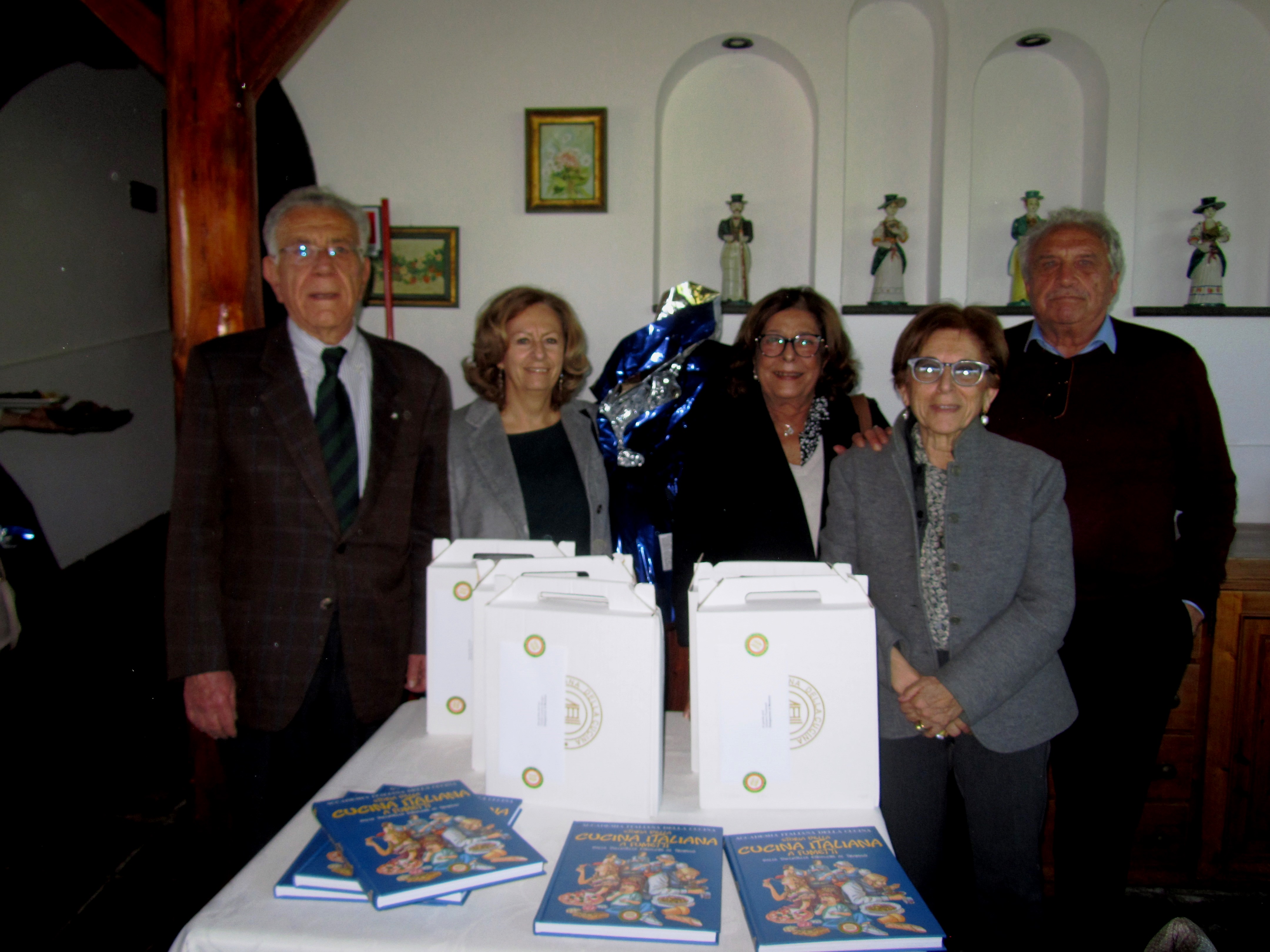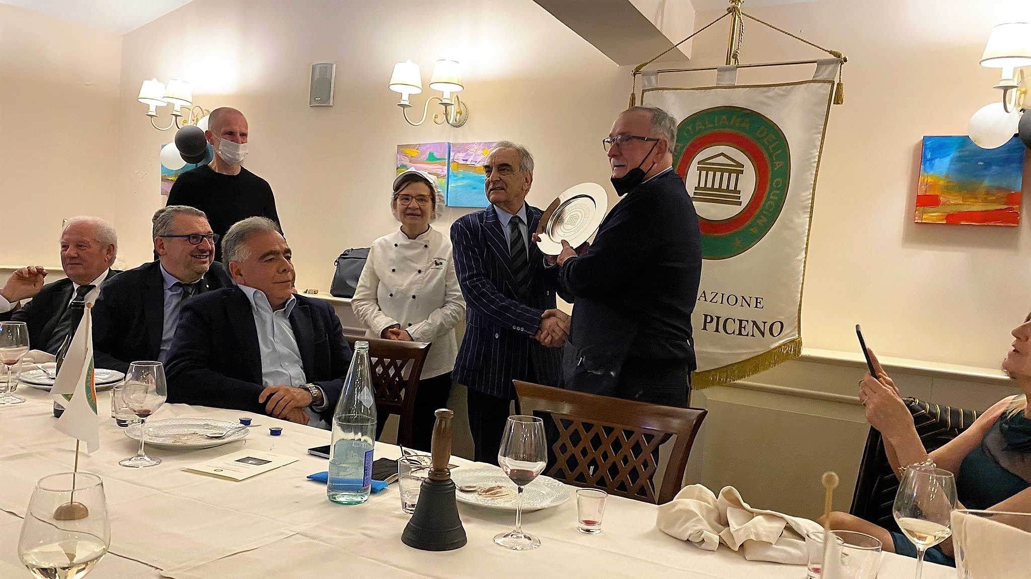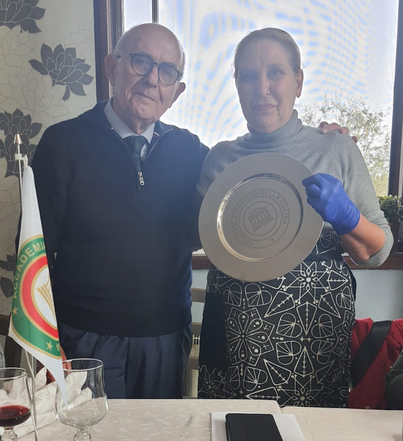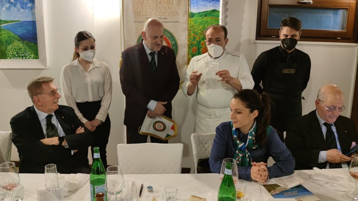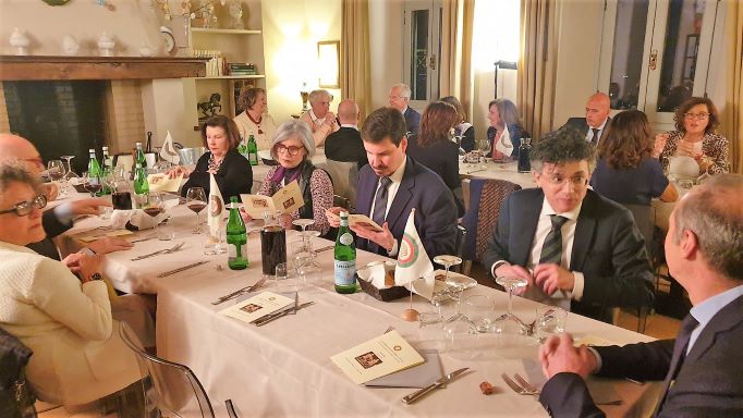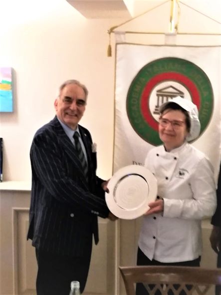 La Delegazione di Ascoli Piceno, in un ambiente simpaticamente sereno grazie all’intervento del notissimo ed estroverso titolare “Giggi” Argila, ha celebrato la Pasqua nel ristorante “Il Ruspante” di Ascoli Piceno con un’apposita riunione conviviale dedicata allo scambio degli auguri. Tutti gli intervenuti hanno avuto così l’opportunità di degustare, con unanime apprezzamento e appagamento del desiderio di sapori strettamente tradizionali del territorio piceno, gli appetitosi e ghiotti manicaretti preparati dalla conosciutissima ed esperta chef Anna Maria Orsini, moglie del ben noto “Giggi”. Sono state confermate anche in questa occasione le straordinarie doti professionali della cuoca Anna Maria già valutate con successo dagli Accademici durante una riunione conviviale del giugno 2019. Il Delegato Vittorio Ricci ha pertanto deciso di premiare, con il consenso di tutti gli astanti, la professionalità della chef con la consegna di uno speciale piatto in silver plate dell’Accademia, accolto con emozionato compiacimento da tutta la famiglia Argila.