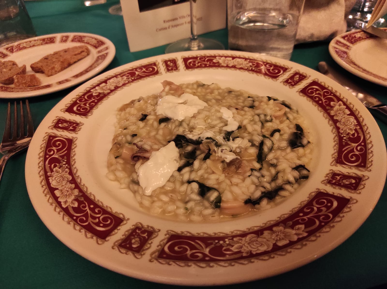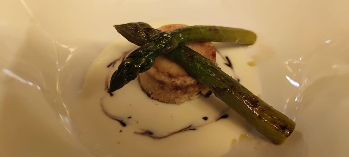 La Delegazione di Cortina d’Ampezzo si è ritrovata presso il ristorante Villa Oretta per la riunione conviviale di Pasqua. I numerosi Accademici presenti hanno particolarmente apprezzato la possibilità di scegliere tra due accattivanti menu, uno a base di pesce e l’altro di carne, costruiti entrambi con maestria dalla famiglia Bocus e dal Simposiarca e Vice Delegato Diego Dipol. Il momento più toccante della serata è stato quello dei festeggiamenti per gli importanti traguardi raggiunti da Romano Scrocco e Guido Caretta, rispettivamente 50 e 25 anni di appartenenza all'Accademia, con la consegna dell’attestato di Benemerenza e del diploma di Appartenenza. A conclusione della serata, un affettuoso brindisi e lo scambio degli auguri per la prossima Pasqua. Foto 1. Da sinistra: Guido Caretta, il Delegato onorario Luigino Grasselli, Romano Scrocco, la Delegata Monica De Mattia e il Vice Delegato Diego Dipol. Foto 2. Nido con erbette spontanee e uovo di quaglia. Foto 3. Sformato di asparagi freschi su letto di fonduta. Foto 4. Risotto con spinacetti, calamaretti, peverasse e stracciatella.