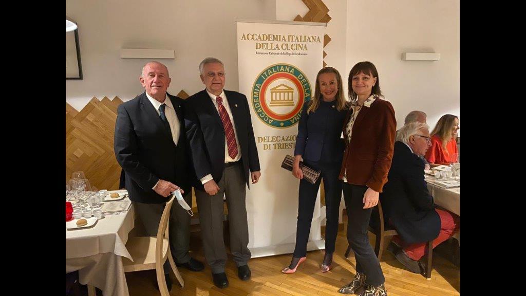 “L’afrodisiaco che non ti aspetti: l’asparago” è stato il titolo del convivio culturale della Delgazione di Trieste che si è svolto presso il ristorante Valeria di Opicina. I Simposiarchi Mara Rondi e Maurizio De Vanna, con il titolare del locale e maestro di cucina Tom Oberdan, hanno celebrato l’asparago, inserendolo nelle varie pietanze. De Vanna ha intrattenuto i presenti con una relazione sul tema dell’asparago e dei cibi afrodisiaci. Mara Rondi ha introdotto l’ospite della serata, Elena Parovel, titolare dell’omonima azienda oleo-vinicola, soffermandosi sull’affinamento subacqueo, tecnica che da poco l’azienda Parovel sta sperimentando nel Golfo con il Prosecco Trieste DOC.