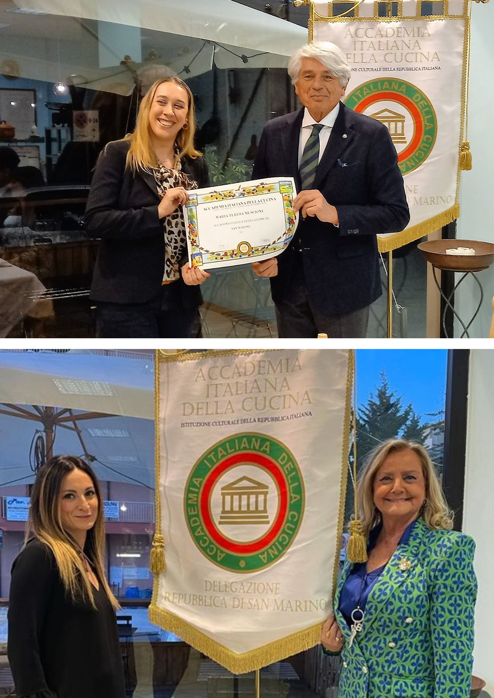 “La cucina macrobiotica, cibo antico per tempi moderni” protagonista della riunione conviviale organizzata al ristorante “Una Siepe di Rosa” dal Delegato Andrea Negri (foto 1) che ha introdotto il tema della serata soffermandosi anche sull’impatto del cibo sull’ambiente e sulla salute (foto 1). Nell’occasione, la dott.ssa Chiara Zannoni (in foto 2 con il Delegato), medico specializzata in scienze dell’alimentazione e diabetologia, ha illustrato le origini e le peculiarità dell’alimentazione macrobiotica, da considerarsi un vero e proprio stile di vita che abbraccia la cultura e la filosofia orientali, concetti che se da una parte entrano in conflitto con i vorticosi ritmi del fast food odierno, dall’altra contrastano fortemente il consumo di cibi sofisticati e conservati, zuccheri e dolci, promuovendo invece il consumo di ortaggi e limitando carne, pesce, latte e derivati. Il menu proposto dallo chef e titolare Olimpio Fontana è stato molto apprezzato dagli Accademici e ospiti che hanno potuto gustare una ricca scelta di portate a testimonianza della grande varietà dei cibi cucinati. La serata, veramente unica sia per il tema trattato sia per le prelibatezze gustate, ha calato i presenti in una realtà culinaria particolare, piena di sapori e di contrasti: insalata di capriolo all’agro di riso, passatelli di miglio in brodo di pesce, lasagne con ragù di seitan, involtino di pesce nasello con besciamella di riso, spezzatino di cinghiale con salsa al tartufo nero, solo per citarne alcuni (foto 4). Durante la conviviale due nuovi ingressi in Delegazione: Ilaria Cecere e Maria Teresa Muscioni, accolte entrambe in un clima di affettuosa amicizia (foto 3 in alto Cecere e Negri; in basso Muscioni con Accademica presentatrice Biancamaria Toccagni).