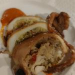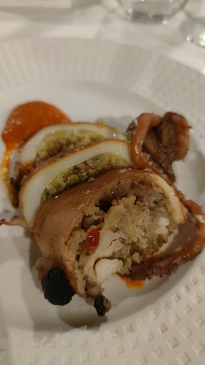 "Accademia mon Amour" è stato il fil rouge che ha caratterizzato la riunione conviviale che la Delegazione teatina ha tenuto nel ristorante "La Foce" di Rocca San Giovanni, selezionato dal Simposiarca Mario Del Zoppo per riscoprire alcuni piatti della tradizione marinara della Costa dei Trabocchi. Primo fra tutti "lu Caracole", che da anni è sparito dai menu ma che è tenuto vivo dalle massaie dei piccoli centri costieri della provincia di Chieti. Prima del simposio, il vice Presidente dell'Accademia, Mimmo D'Alessio, ha intrattenuto Accademici e postulanti sui temi della "buona educazione" accademica a tavola, con numerosi interventi ed un dibattito acceso, moderato dal Delegato Nicola D'Auria. Foto 1. I saluti del Delegato. Foto 2. Il relatore della serata: il Vice Presidente Mimmo D'Alessio. Foto 3. La brigata di cucina. Foto 4. Uno dei piatti serviti: seppia ripiena.
